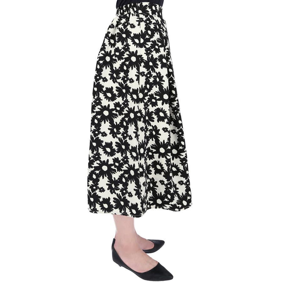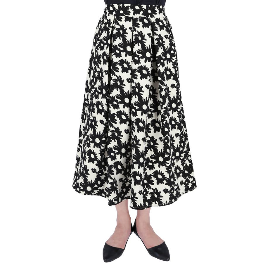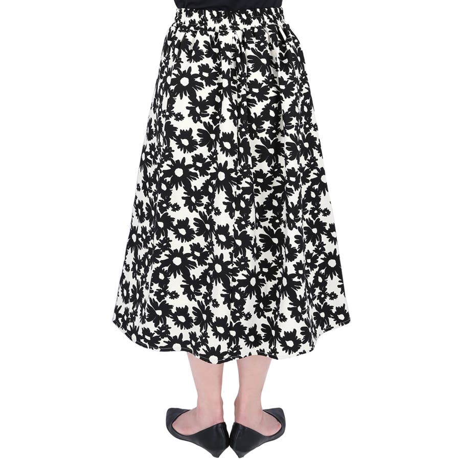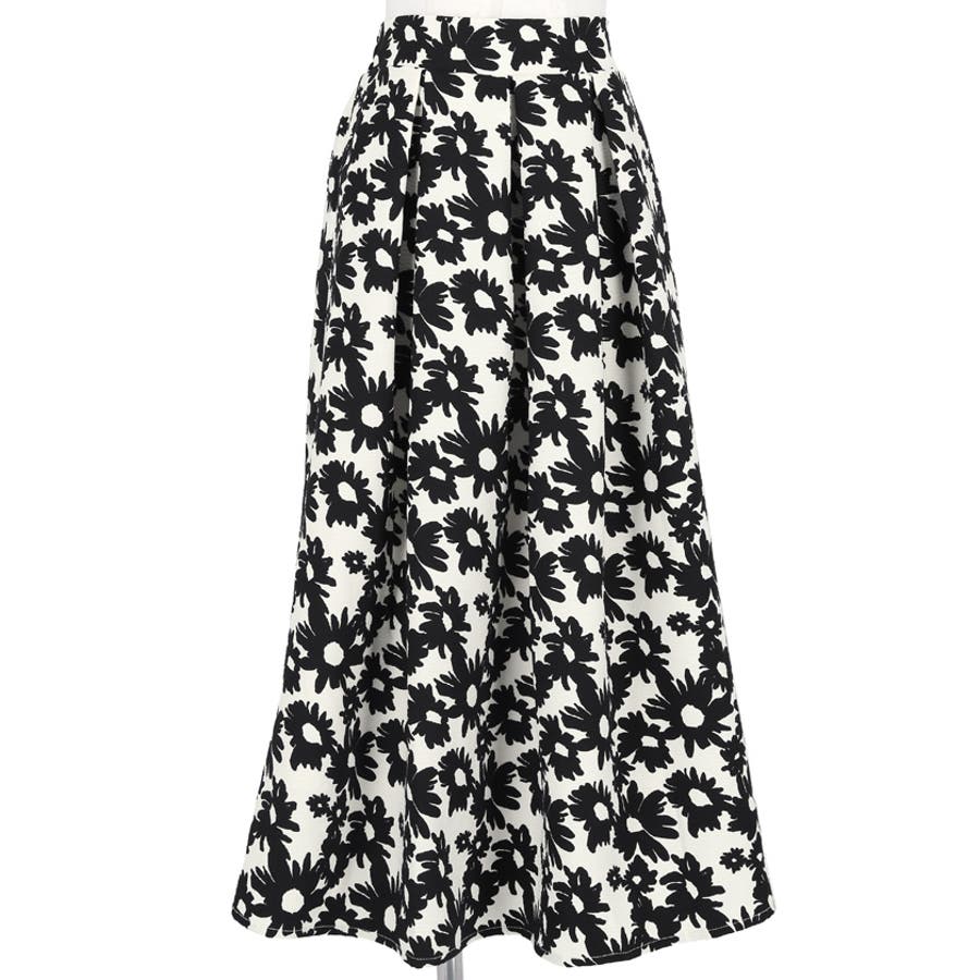 ウエストタックモノトーンフラワースカートcocaオリジナル(フレア Aライン ミ…