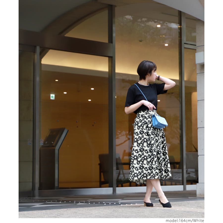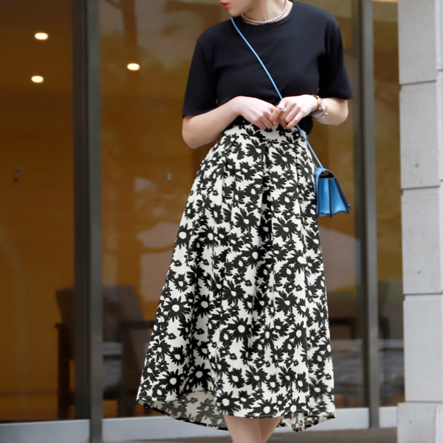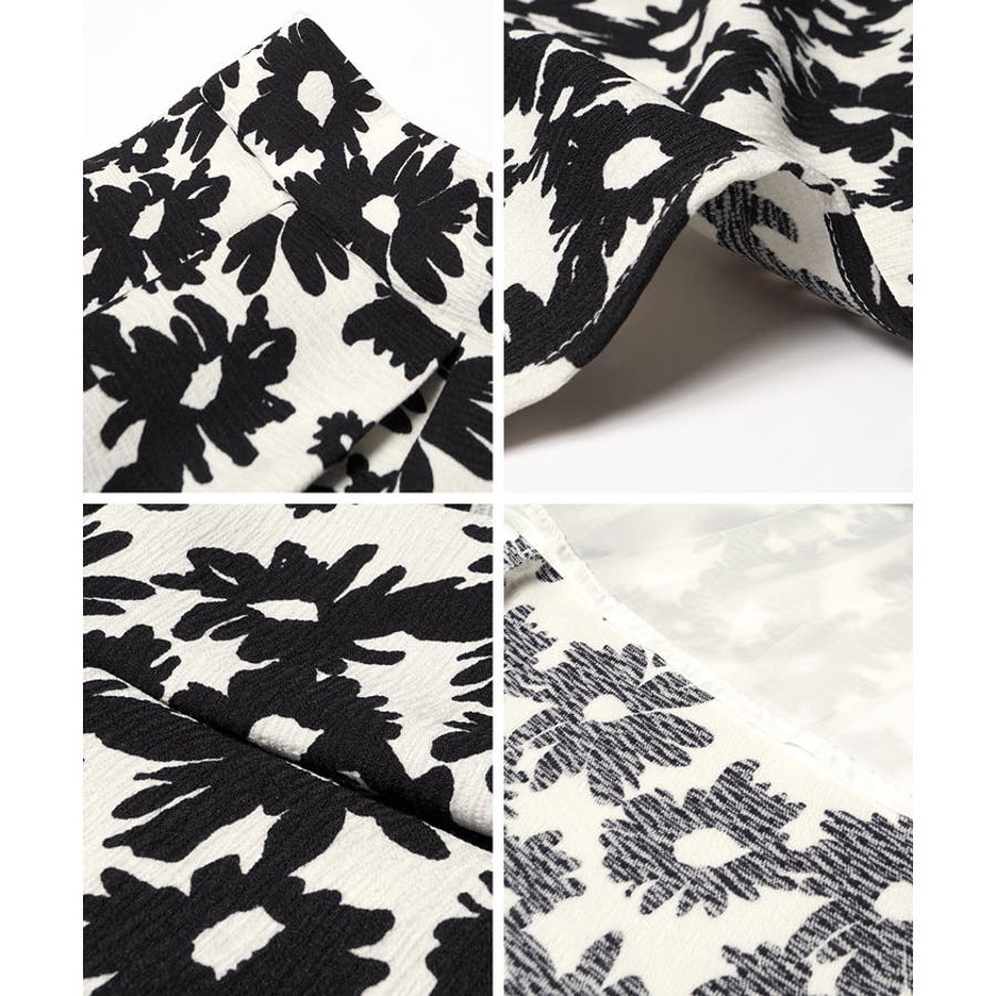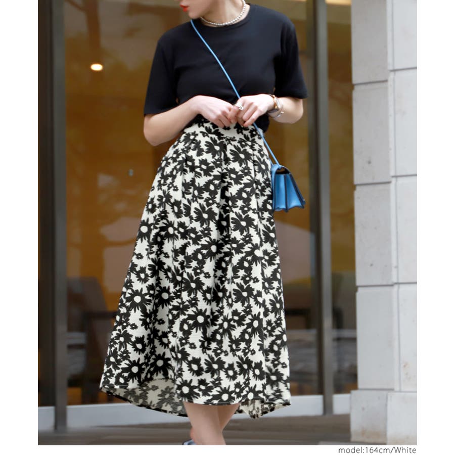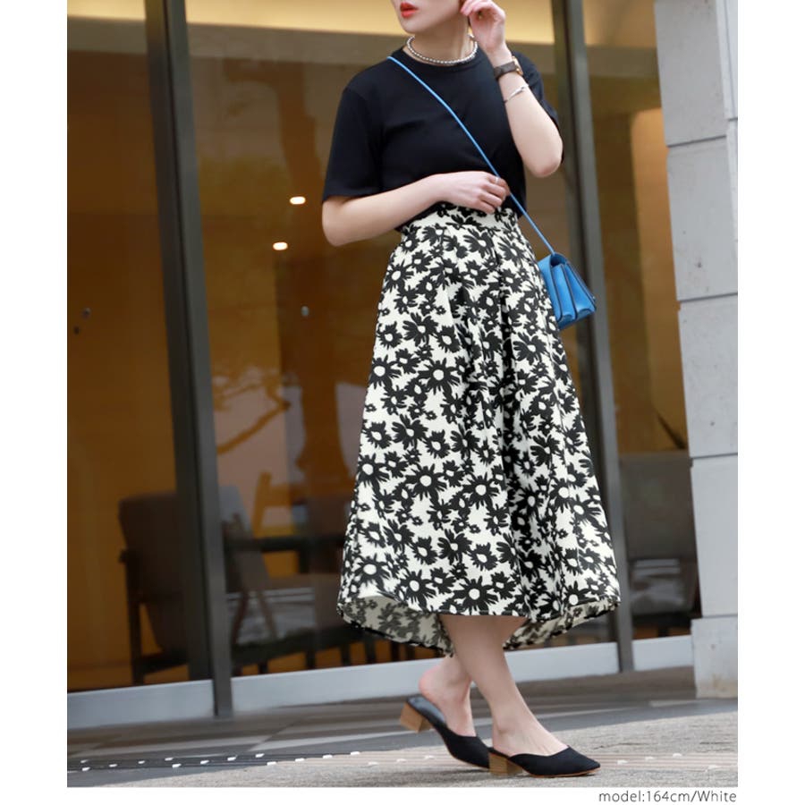 ウエストタックモノトーンフラワースカートcocaオリジナル(フレア Aライン ミ…