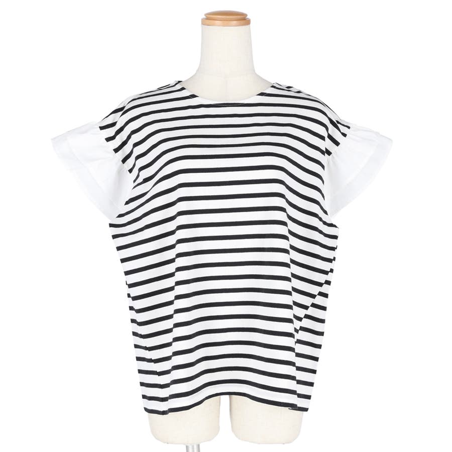そでのフリルがかわいいです。ボーダーでカジュアルなのでかわいすぎずに着やすいです。