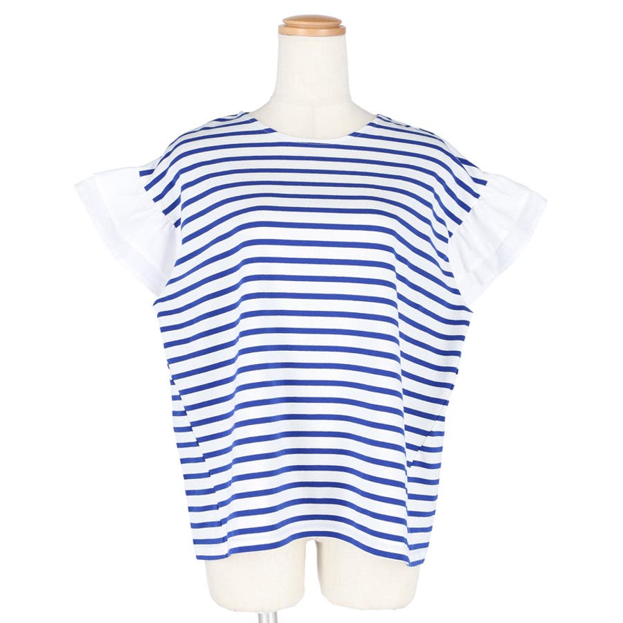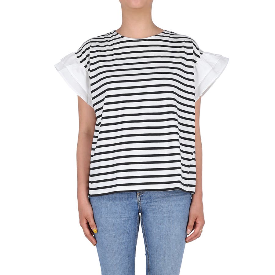 そでのフリルがかわいいです!ボーダーなのでカジュアルに着られるのでついつい手に取ってしまいます。、