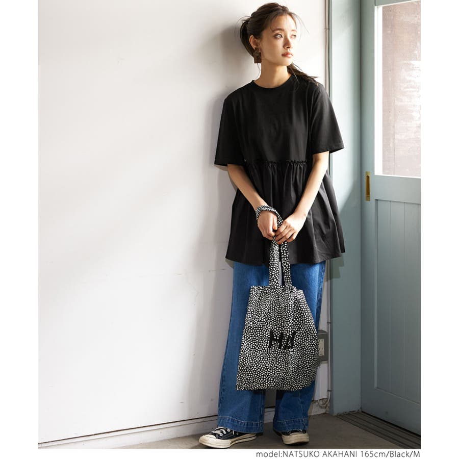 身頃の上の方はTシャツ生地、下の方は綿素材。
