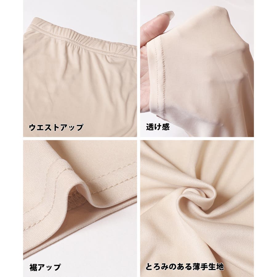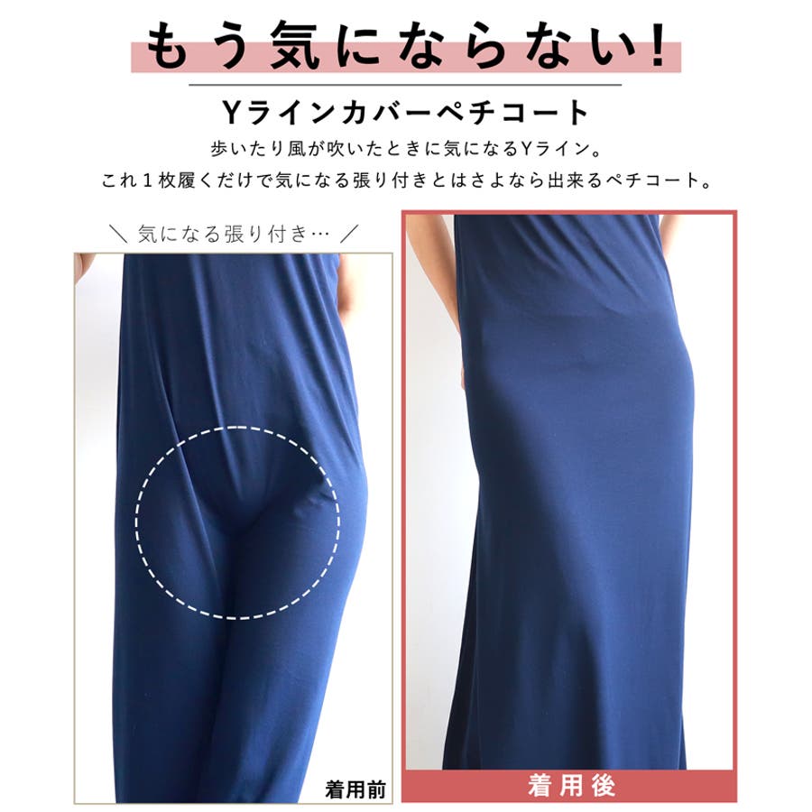 ツルッとした素材なので滑りもよく、静電気も防いでくれるし、前をだけでなく後ろのヒップラインもカバーしてくれるからニットのナロースカートを履く私には本当に有り難いアイテムです。