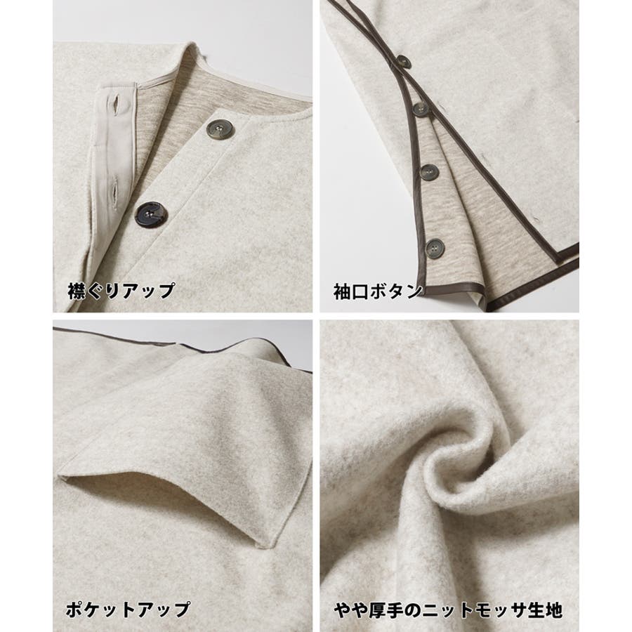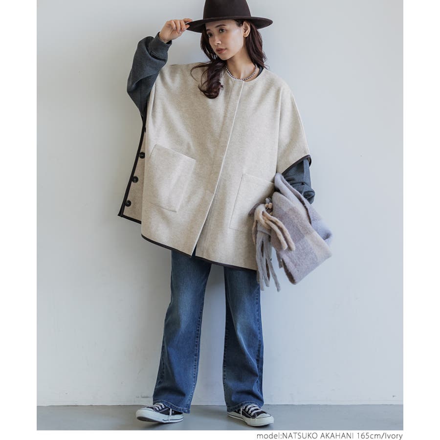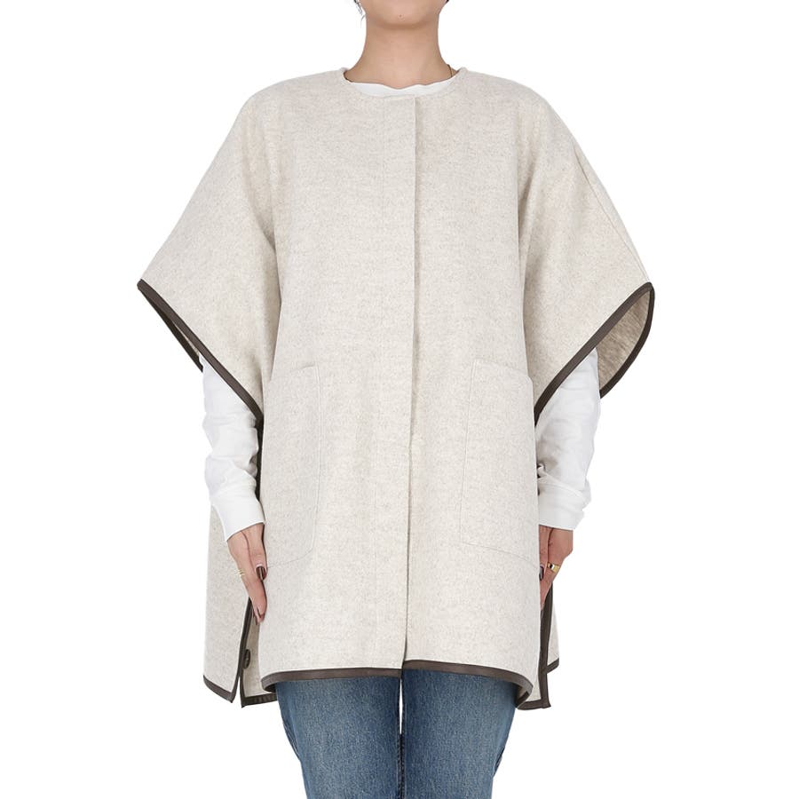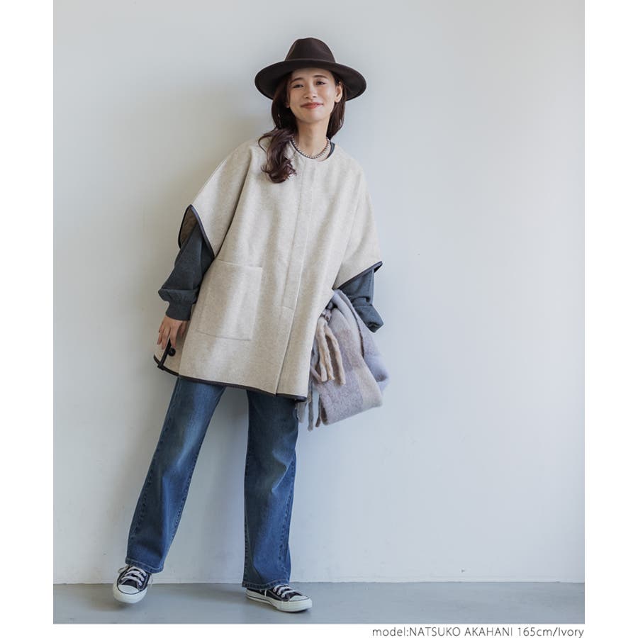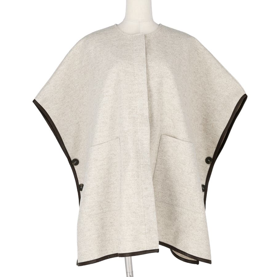 ポンチョ レディース コート 羽織 ニットモッサ ポケット レザーパイピング ビックシルエット 配色 アウター ジャケット ウールライク ニットモッサポンチョ 前開き 配色 無地 マタニティ コカ COCA coca COCA coca