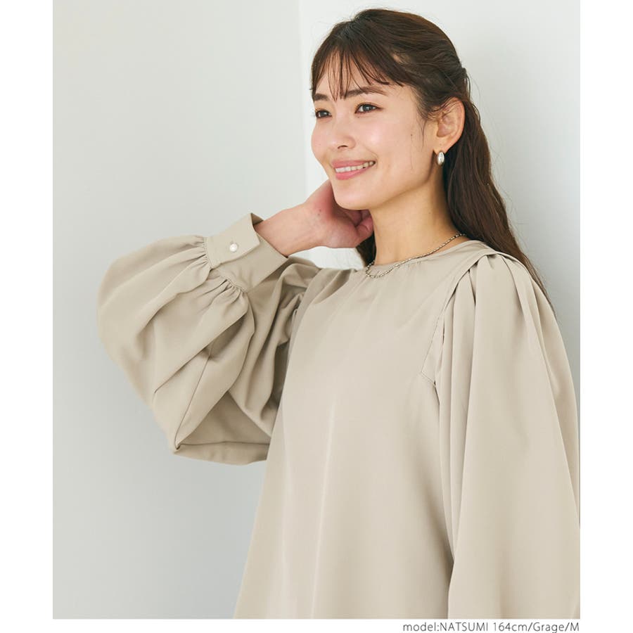 ボリュームスリーブの可愛らしいシルエットで、シンプルながらも着映えするアイテムです。