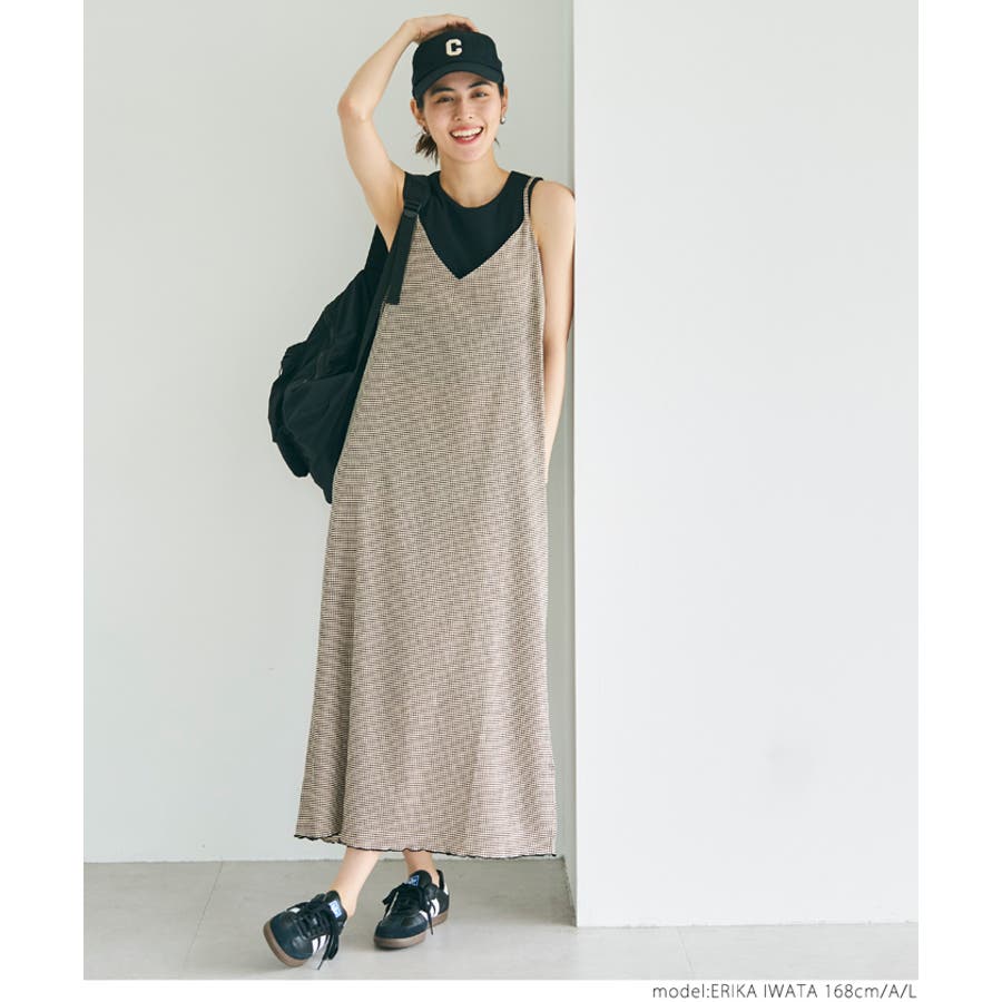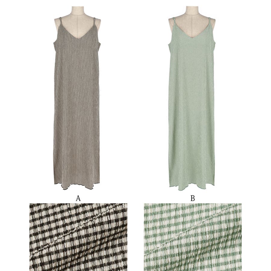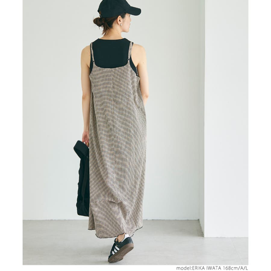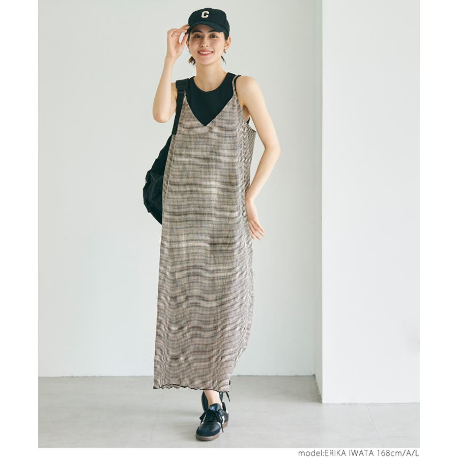 ワンピース レディース シャーリングキャミワンピ チェック柄 ロング丈 調節可 重ね着 シンプル 伸縮性 キャミワンピース ロングワンピース シャーリング 調節可能 Vネック ストレッチ カジュアル コカ COCA coca COCA coca