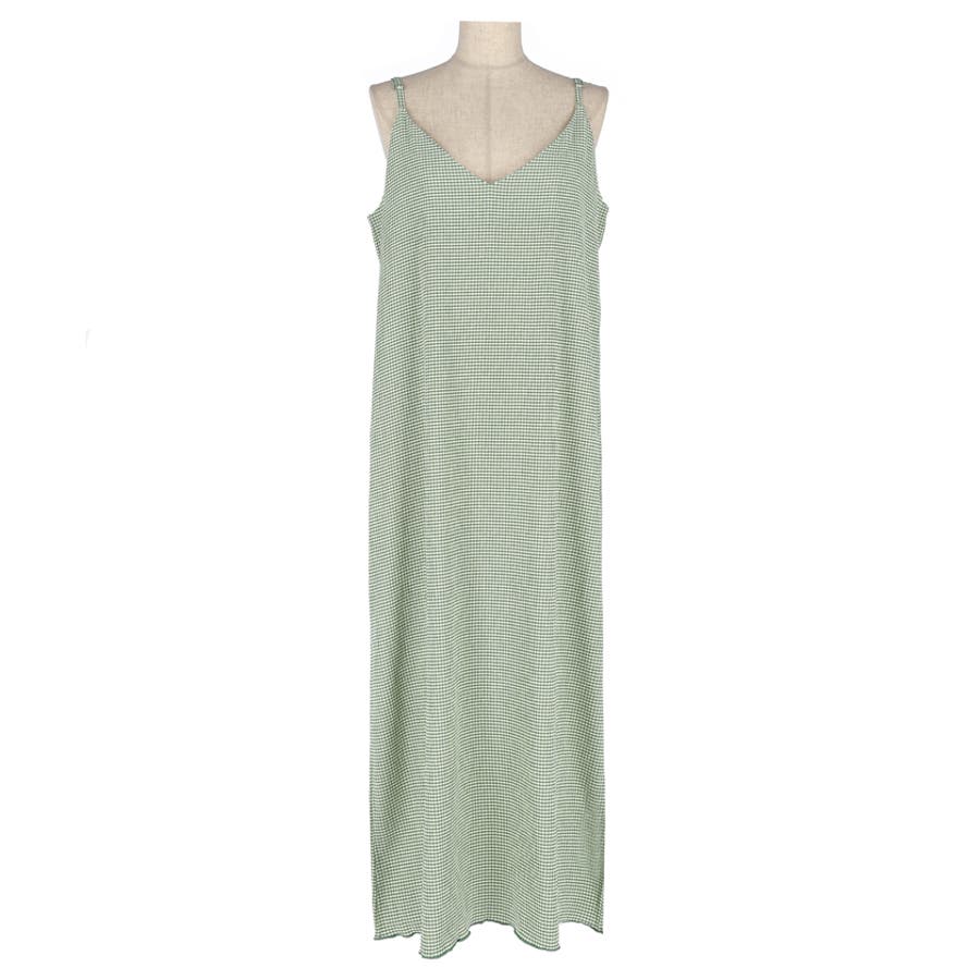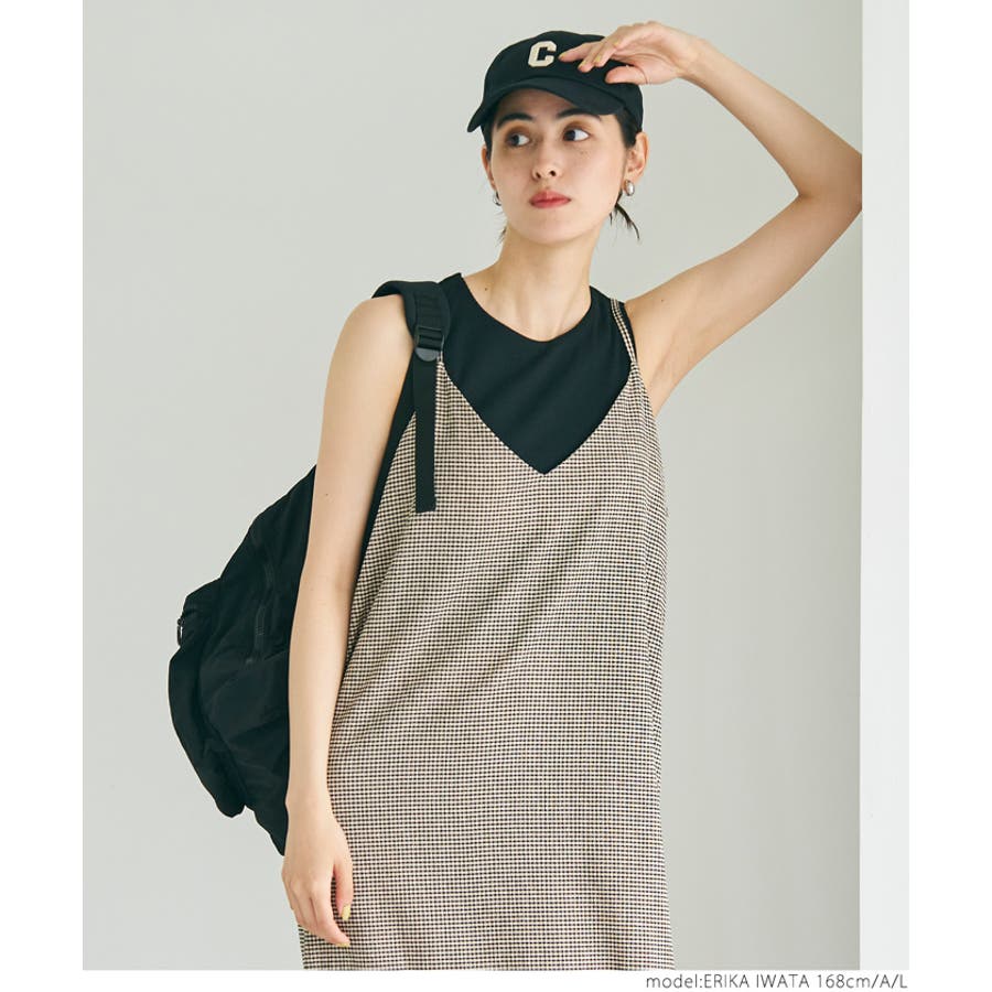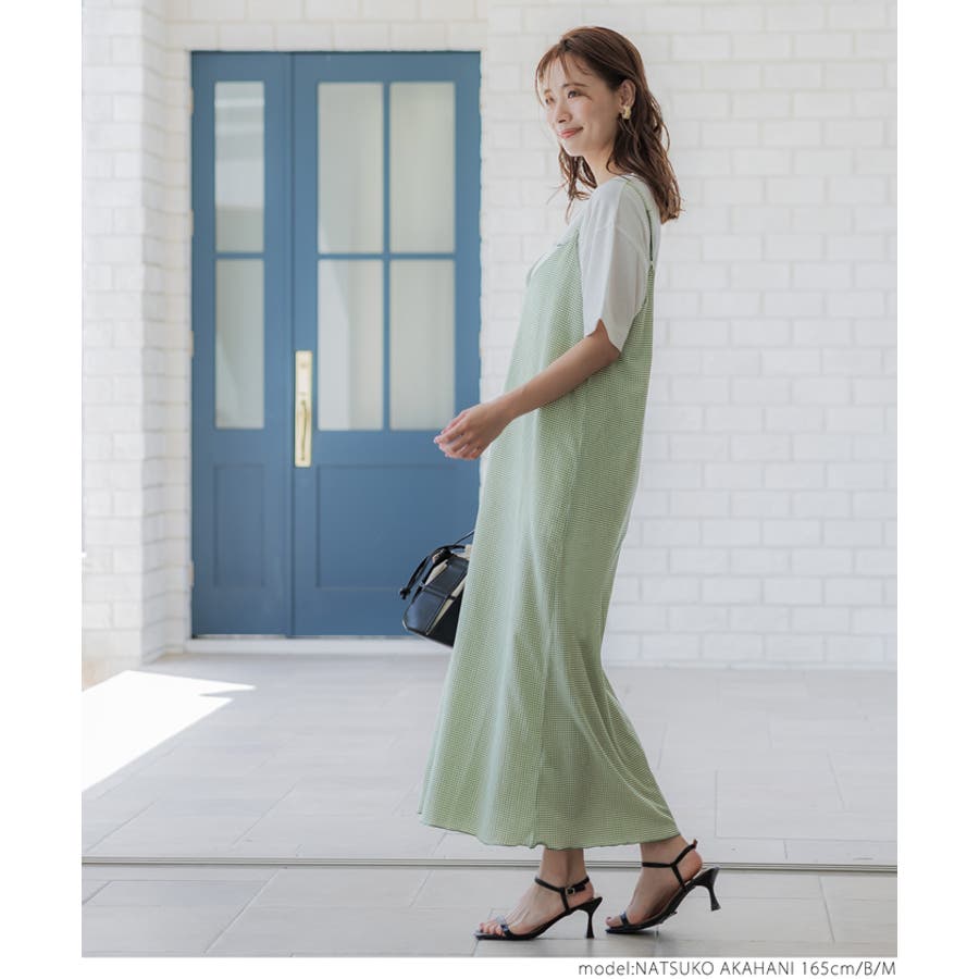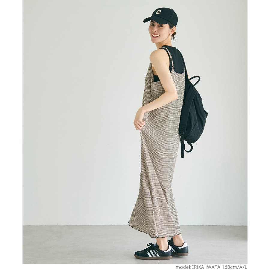 ワンピース レディース シャーリングキャミワンピ チェック柄 ロング丈 調節可 重ね着 シンプル 伸縮性 キャミワンピース ロングワンピース シャーリング 調節可能 Vネック ストレッチ カジュアル コカ COCA coca COCA coca