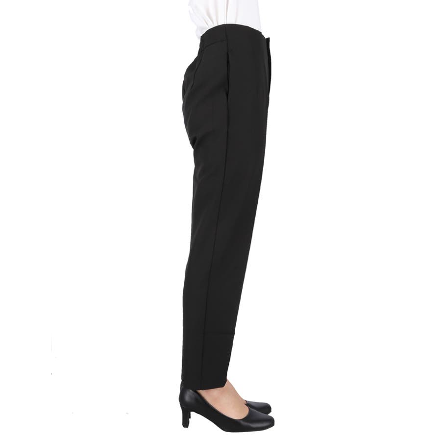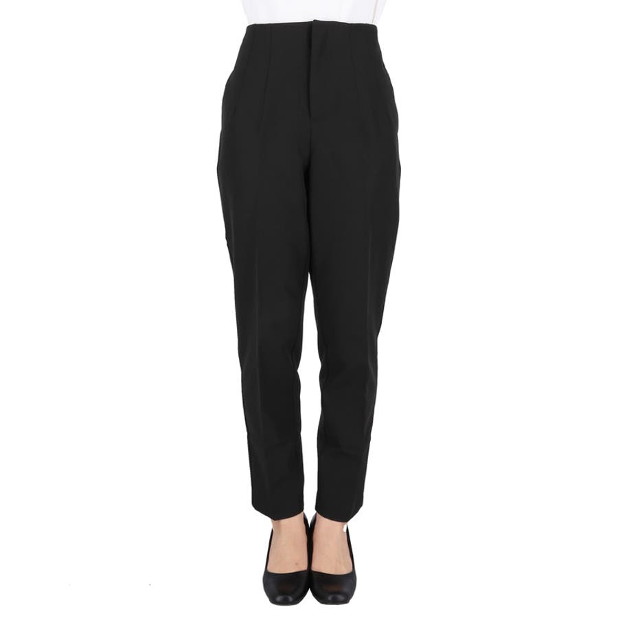 無地でシンプルなデザインながら、センタープレスとダーツ入りのテーパードシルエットで美脚効果。