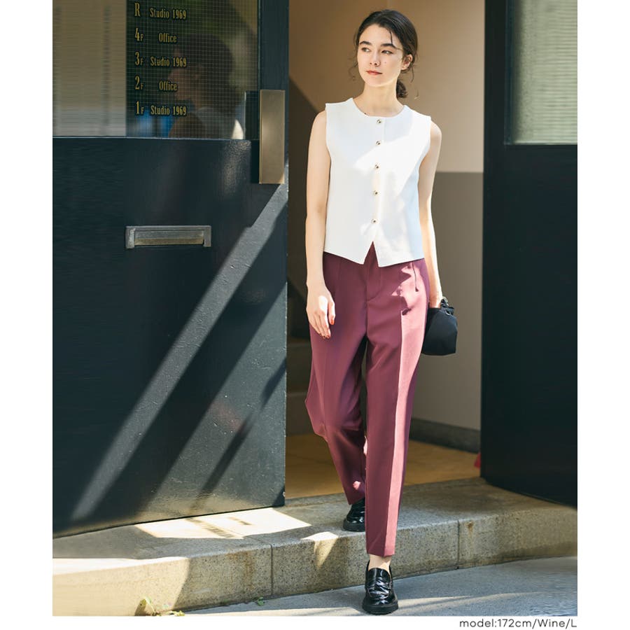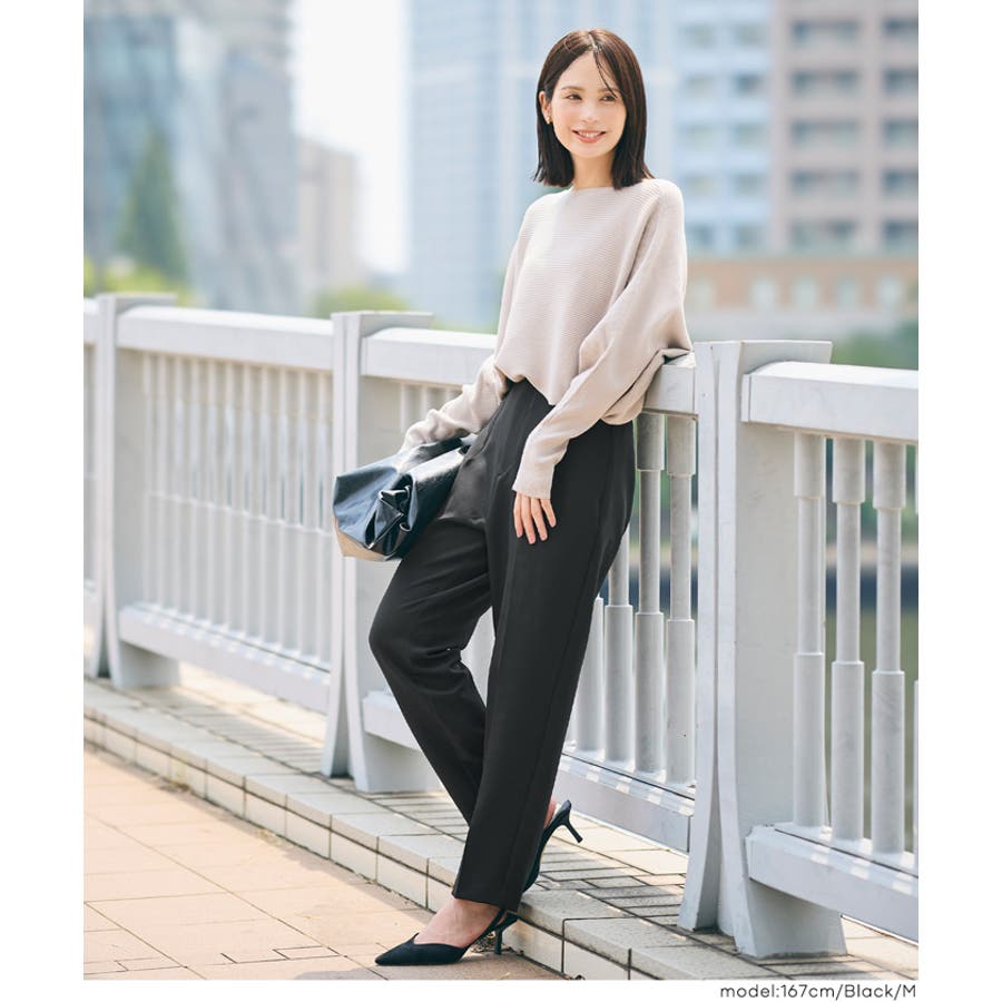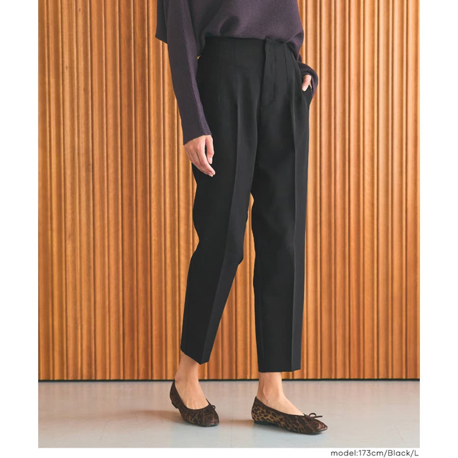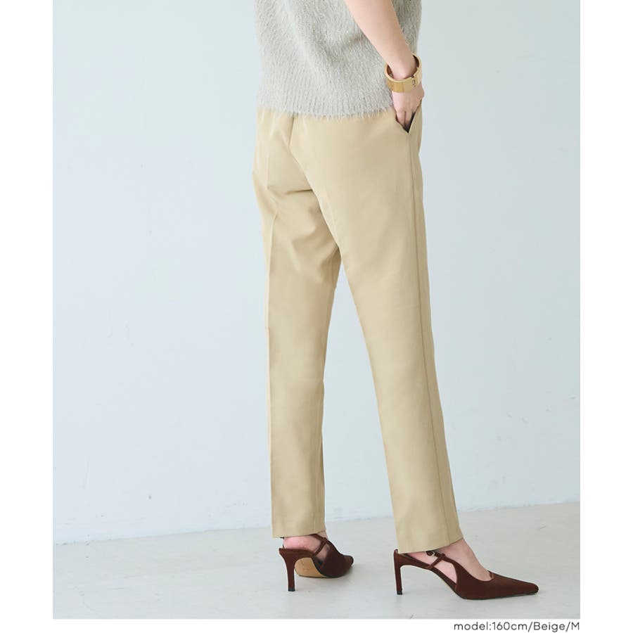どこから見てもすっきりとした印象のテーパードパンツ。
