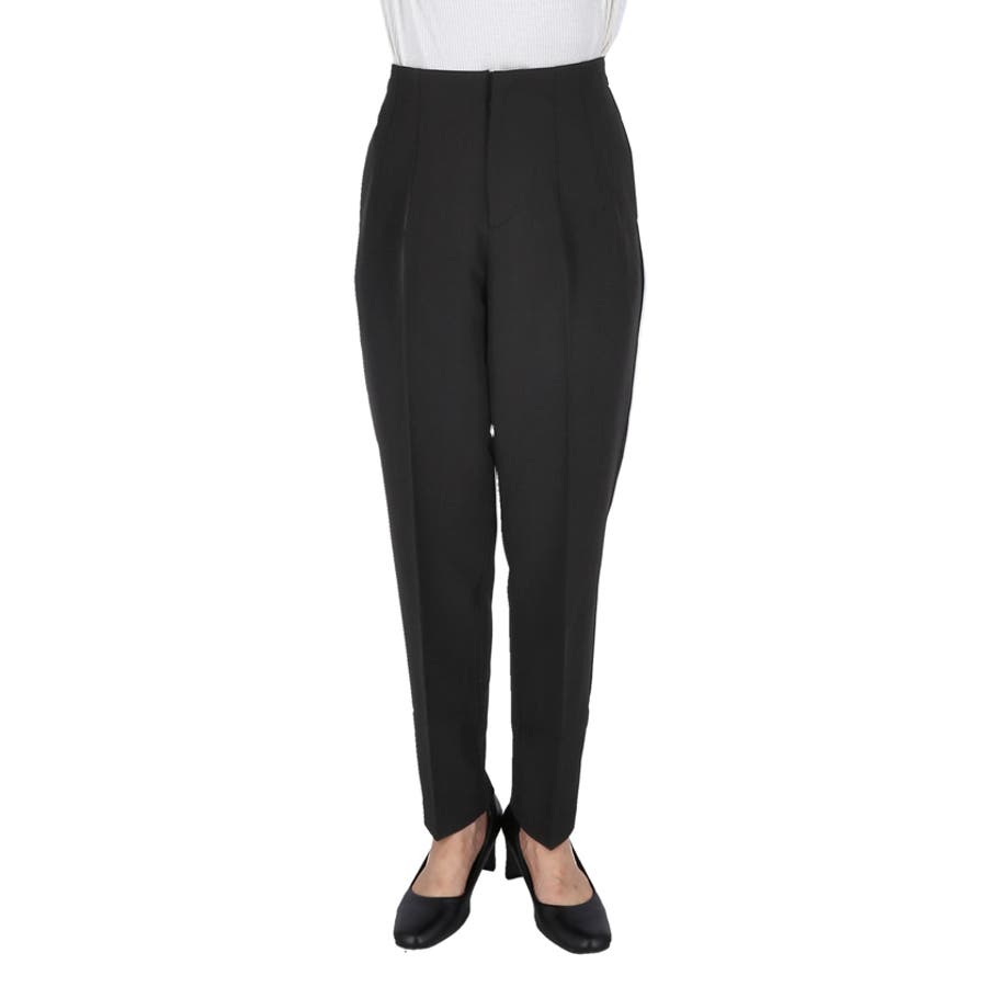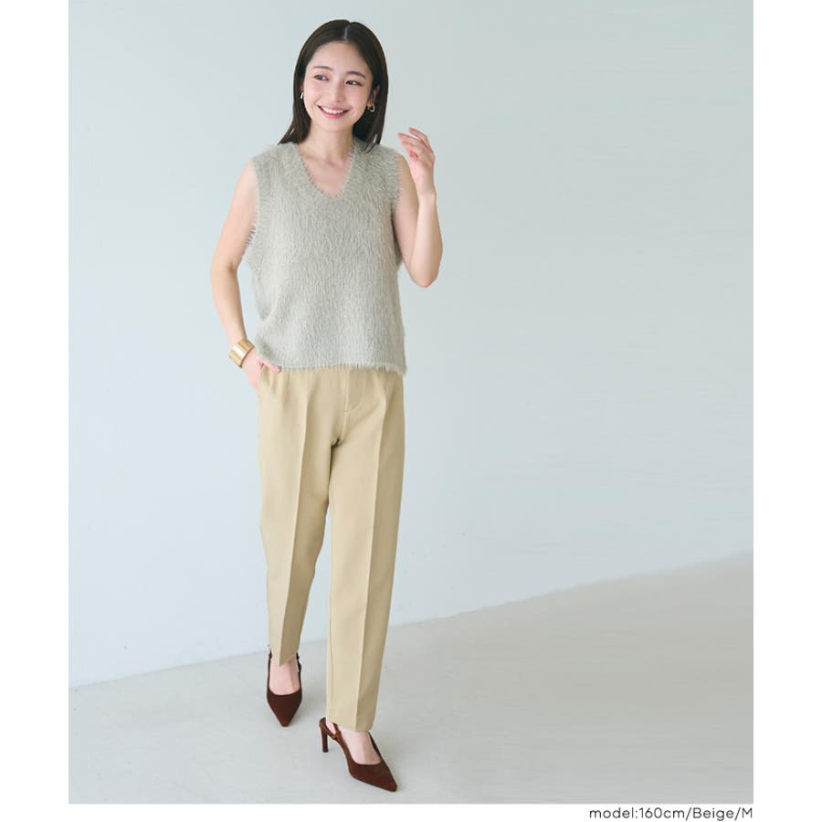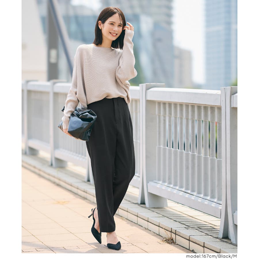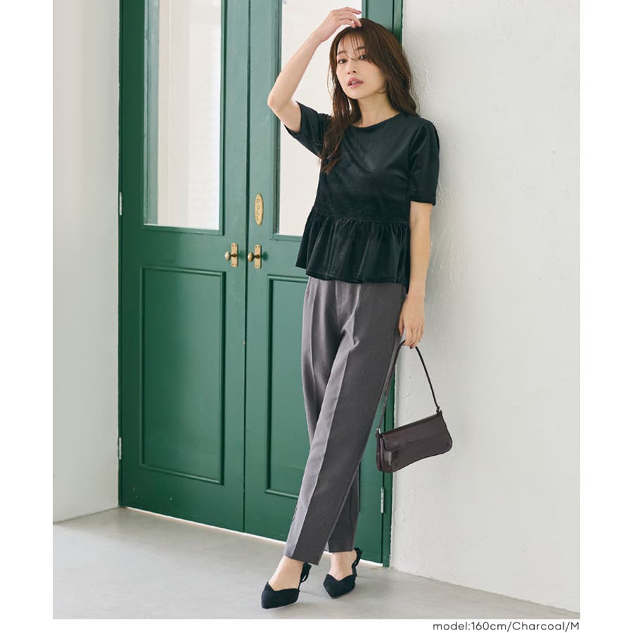 どこから見てもすっきりとした印象のテーパードパンツ。