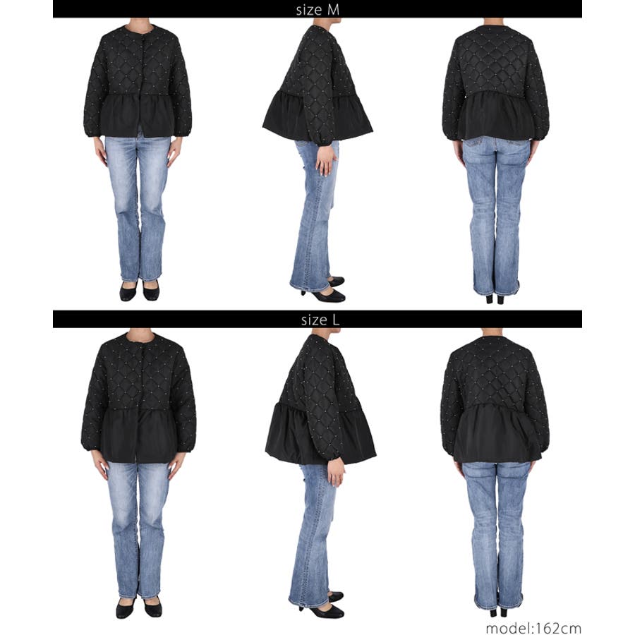 アウター ブルゾン キルティング パール 長袖 前開き 羽織り ティアード ギャザー ミディアム丈 シンプル 無地 24aw コカ COCA coca COCA coca