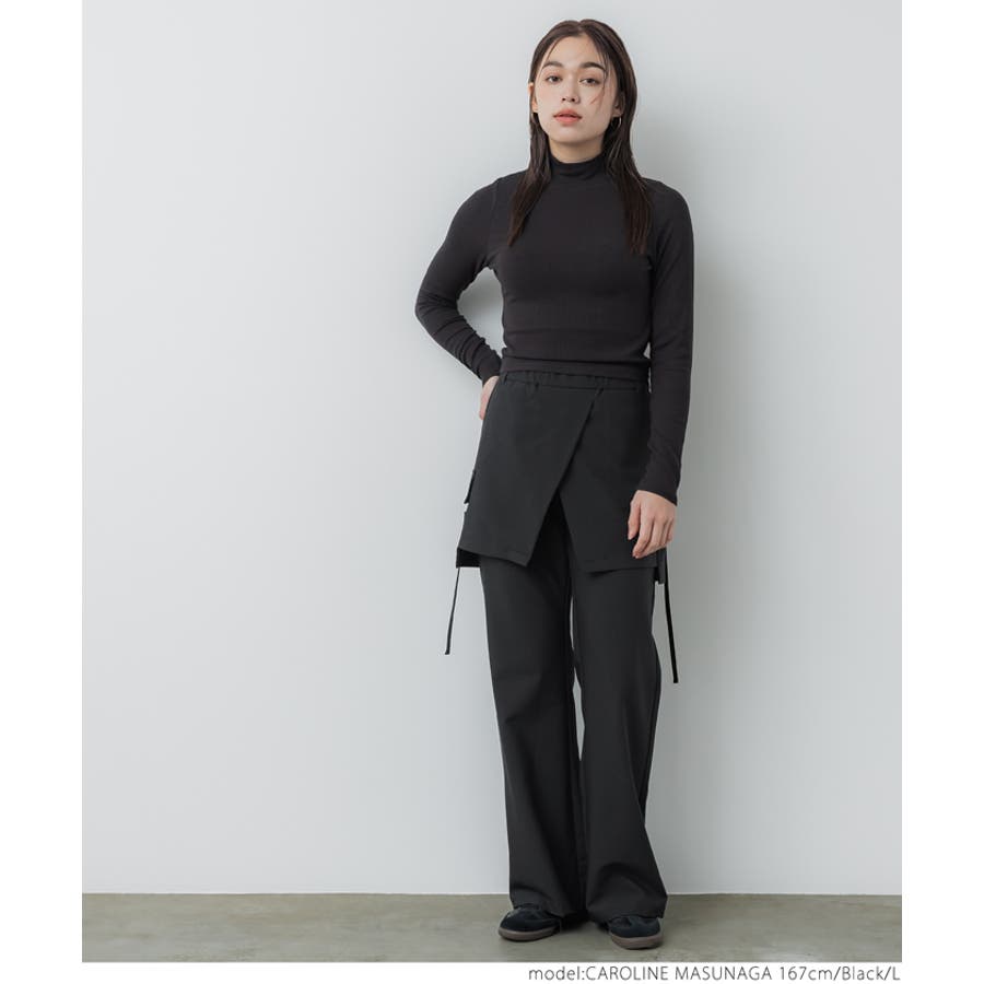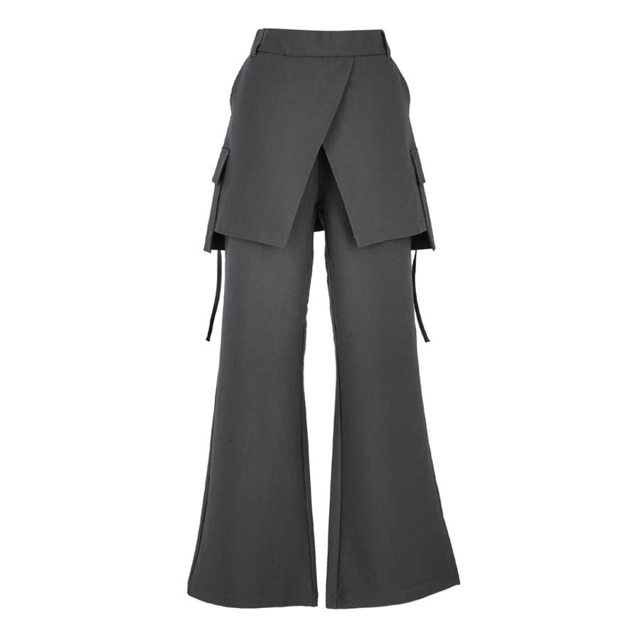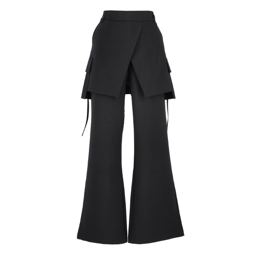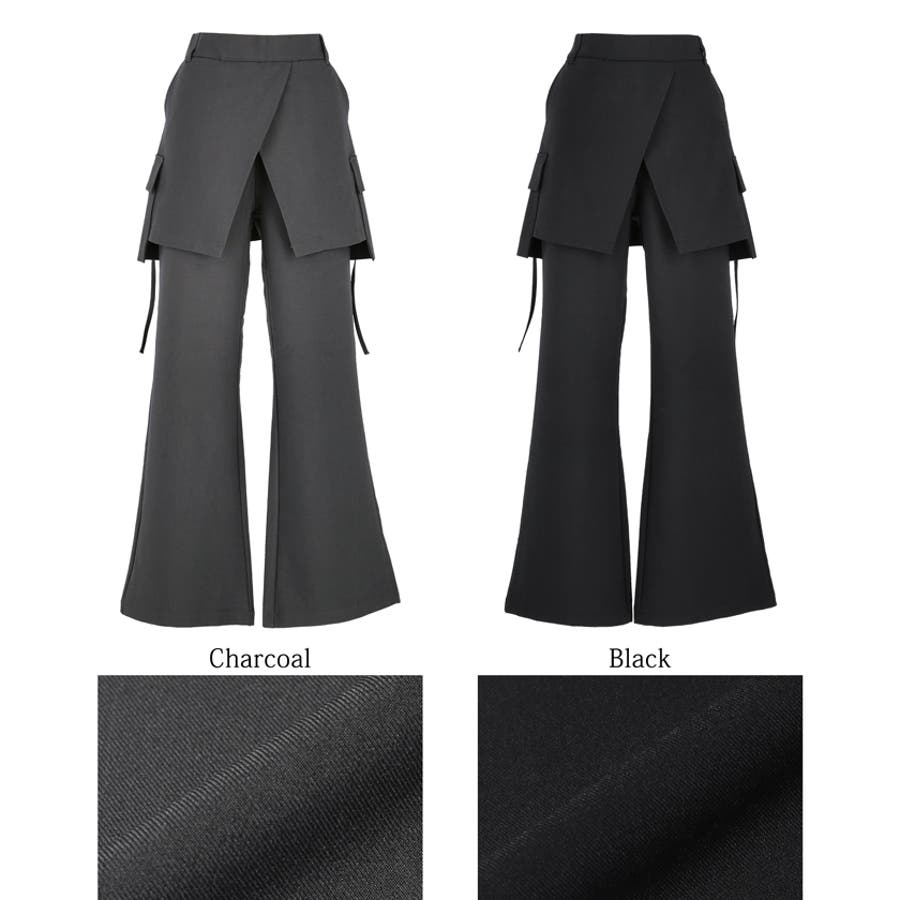 ボトムス パンツ レイヤード スカパン ロング丈 フレアパンツ ポケット ウエストゴム シンプル 無地 カジュアル GC 24aw コカ COCA coca COCA coca
