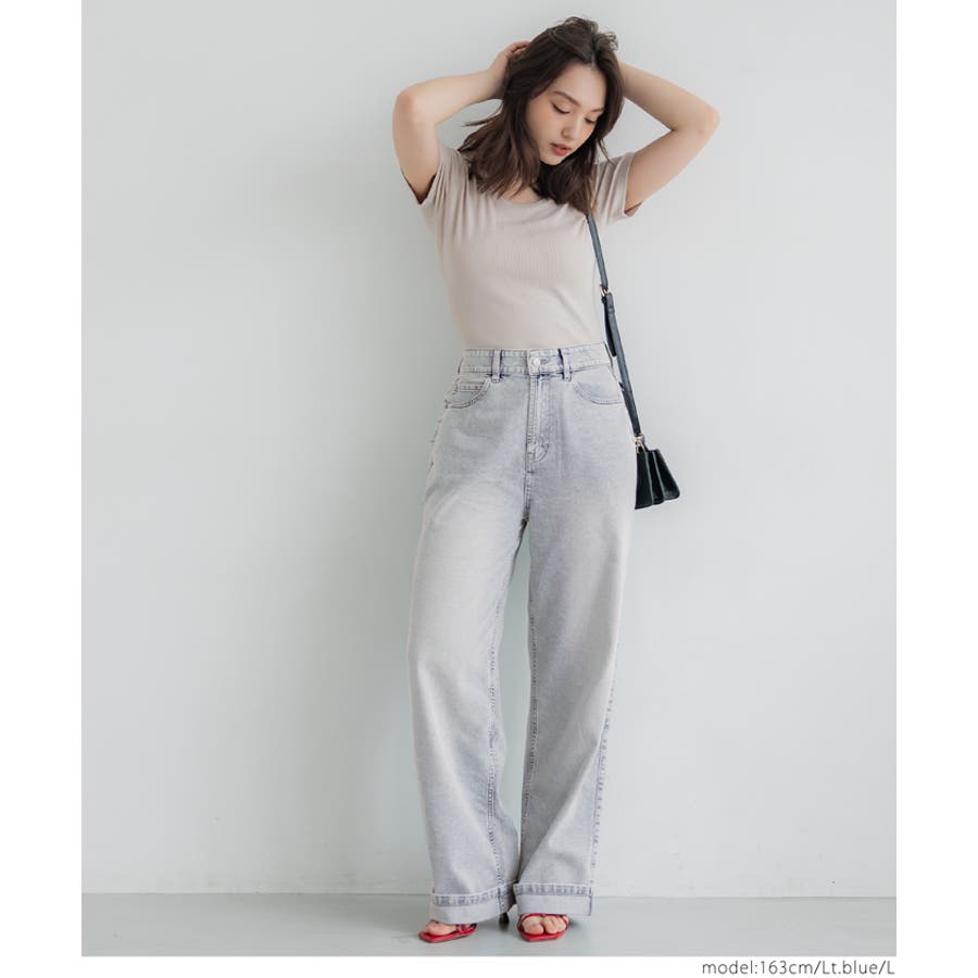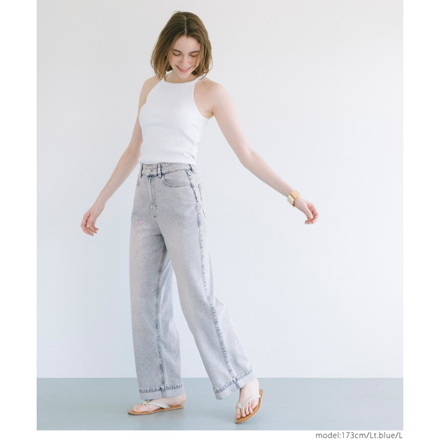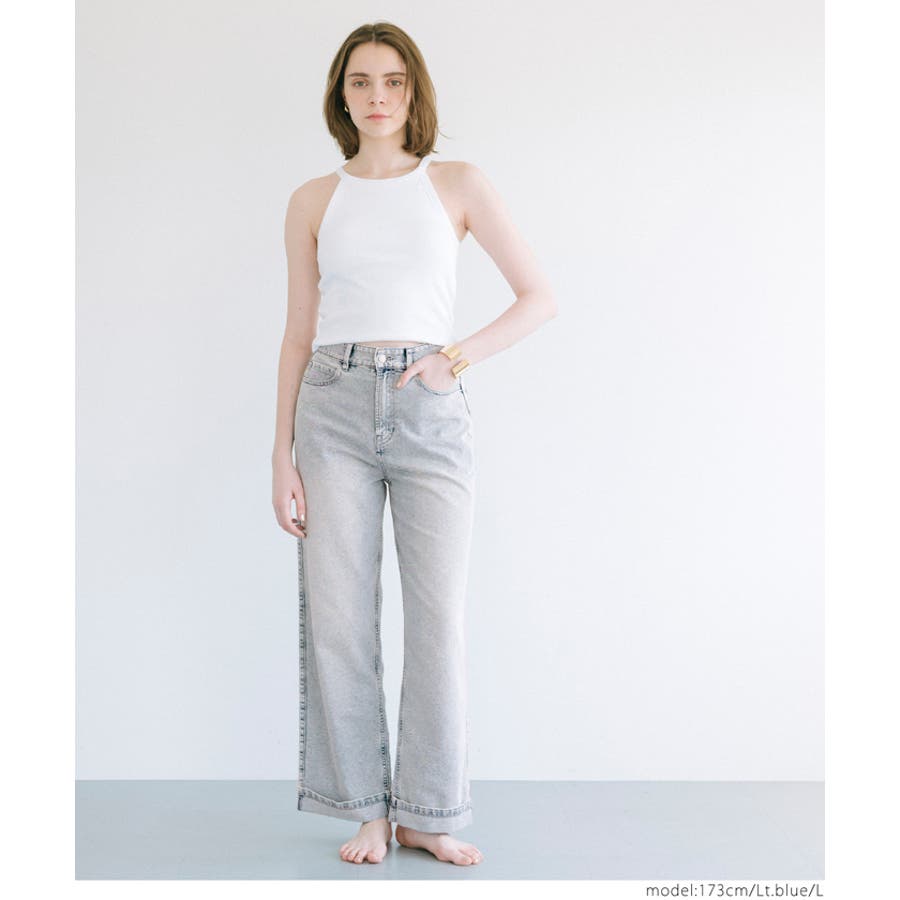 裾がロールアップ仕様になっていて、カジュアルにもきれいめにも対応できる万能デニムパンツ。
