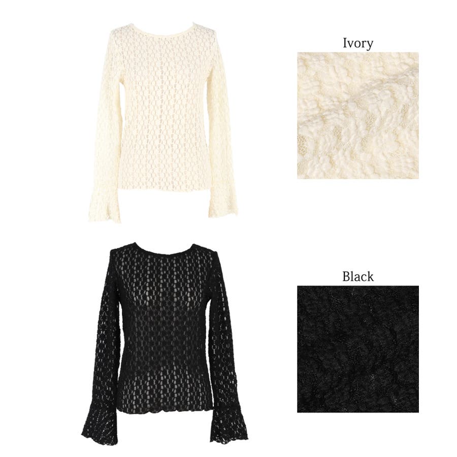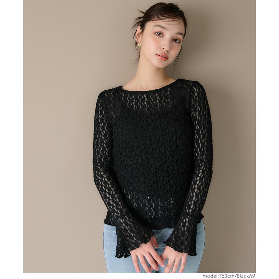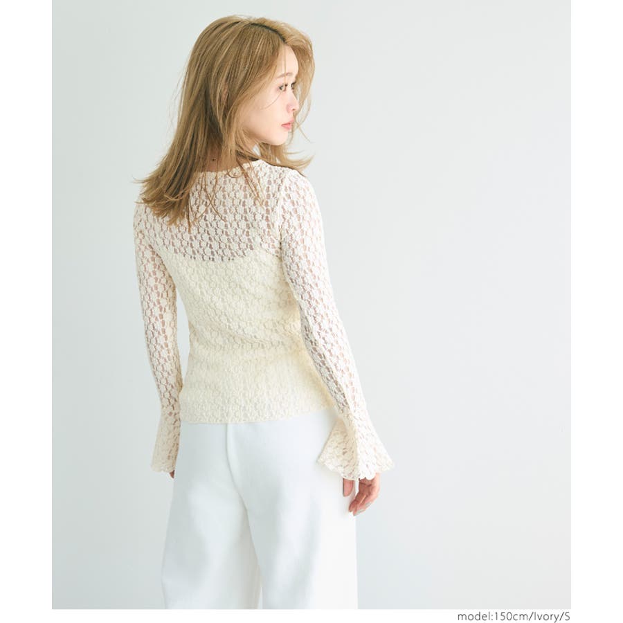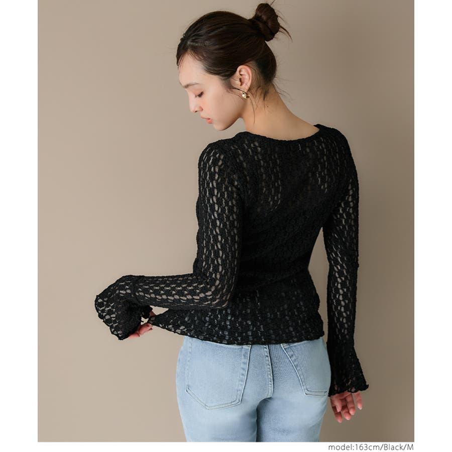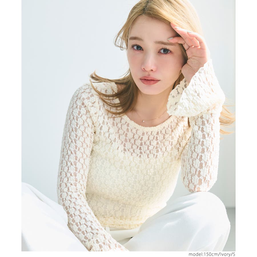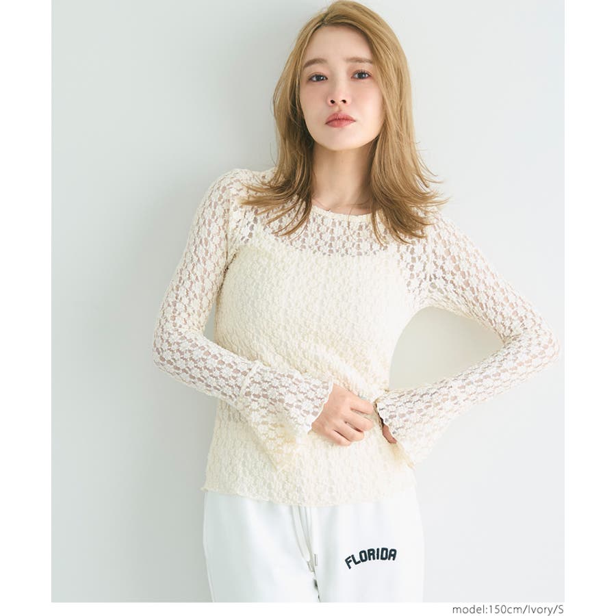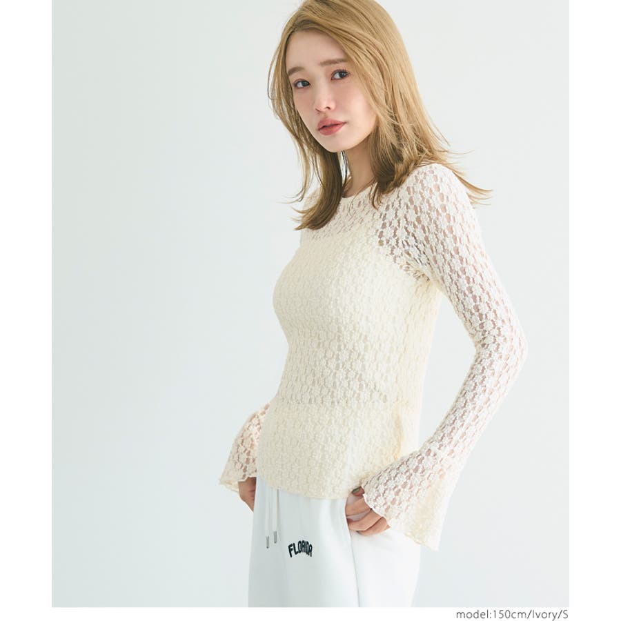 トップス レース 透け感 花柄 フリル 袖フリル 長袖 ガーリー フェミニン ラウンドネック 伸縮性 フラワー 25ss コカ COCA coca COCA coca おしゃれ 可愛い きれいめ おとな 大人 女性ファッション 韓国 春服 夏服 春 夏 カジュアル プチプラ 10代 20代 30代 40代 50代 オフィス ホーム シンプル