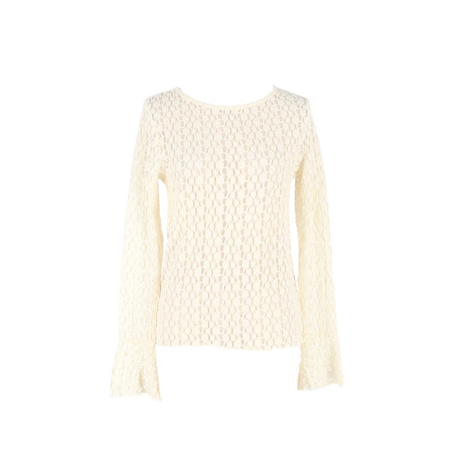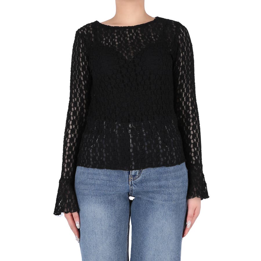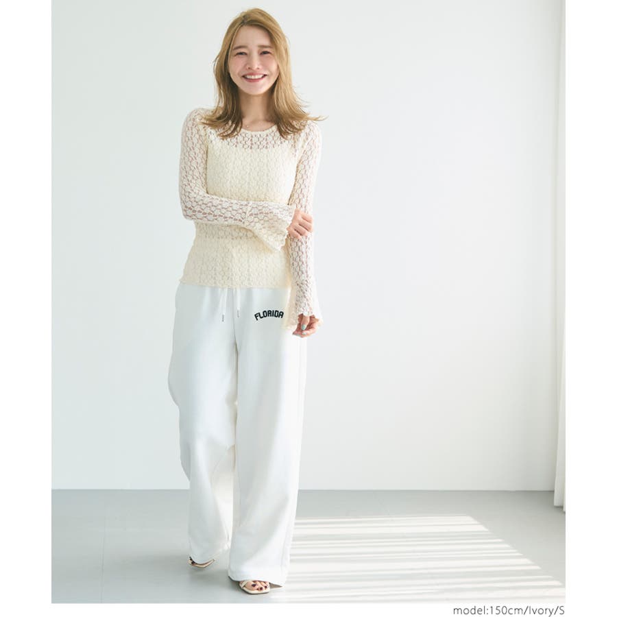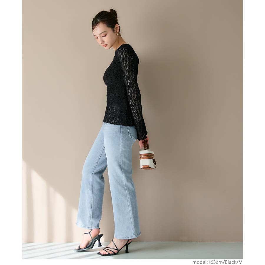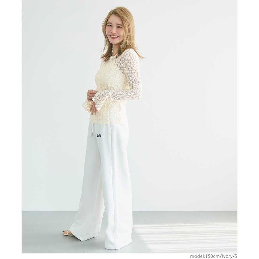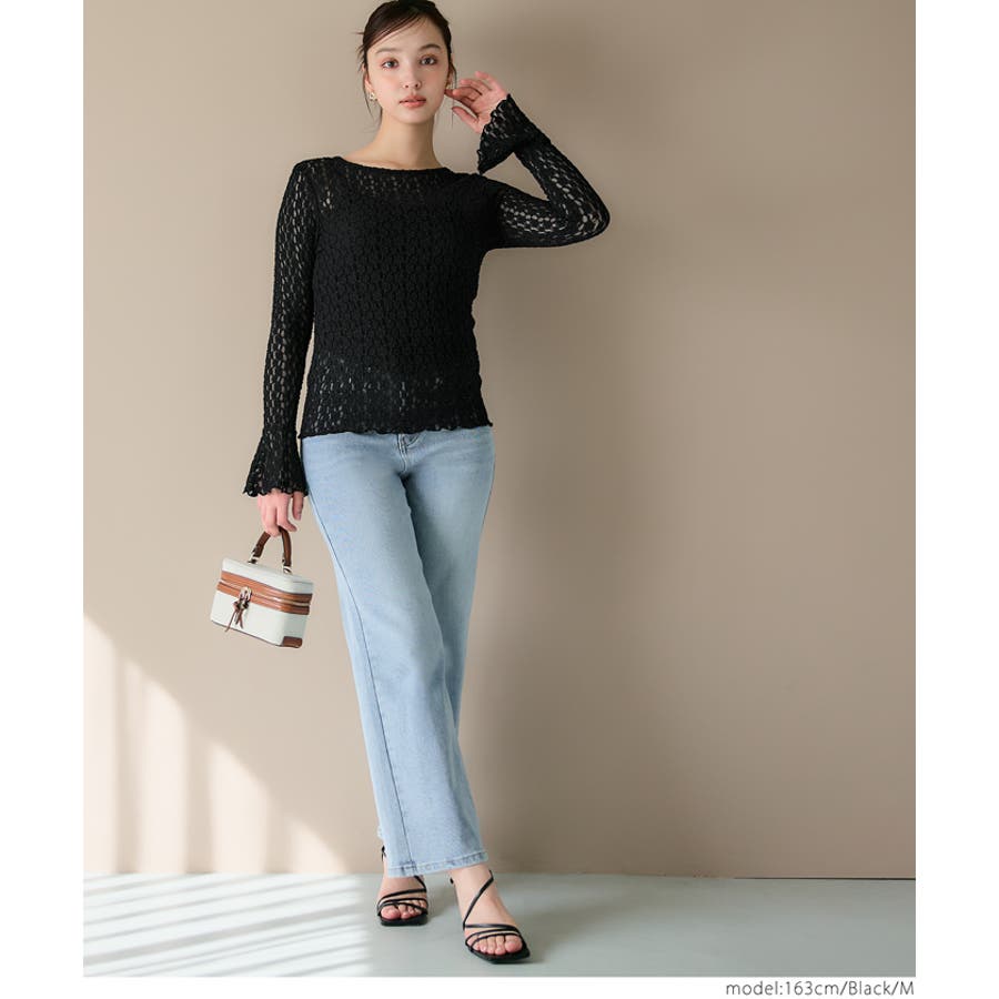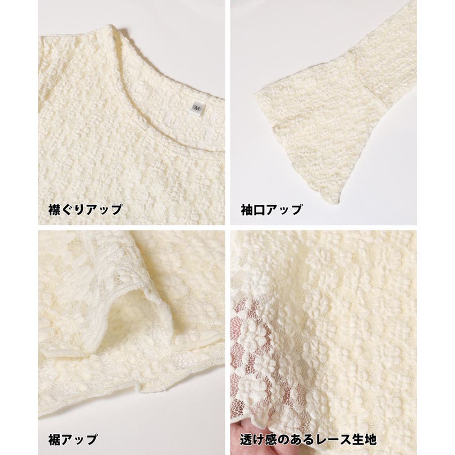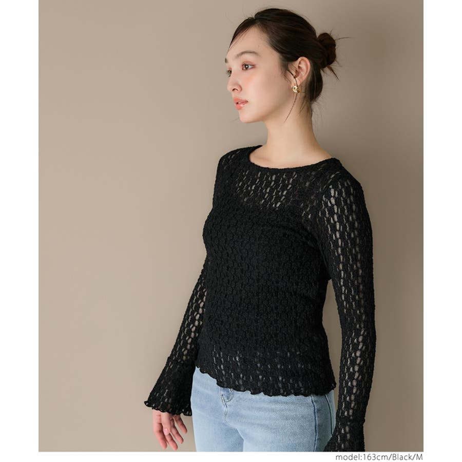 トップス レース 透け感 花柄 フリル 袖フリル 長袖 ガーリー フェミニン ラウンドネック 伸縮性 フラワー 25ss コカ COCA coca COCA coca おしゃれ 可愛い きれいめ おとな 大人 女性ファッション 韓国 春服 夏服 春 夏 カジュアル プチプラ 10代 20代 30代 40代 50代 オフィス ホーム シンプル