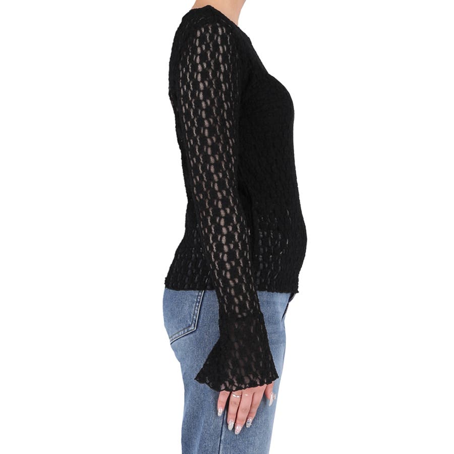 袖口のフレアデザインが女性らしさを引き立て、シンプルながらも華やかさがあります。