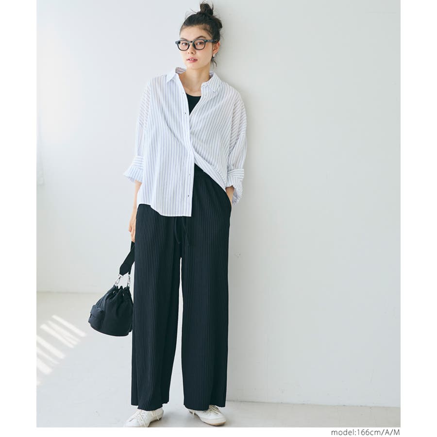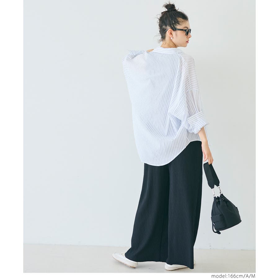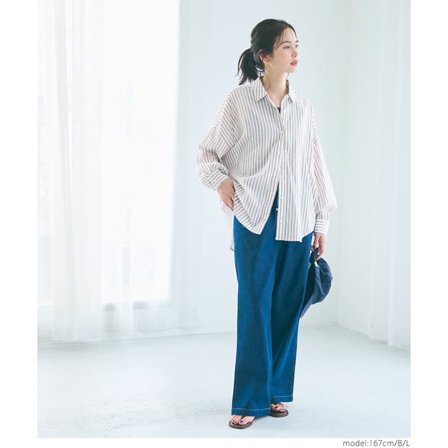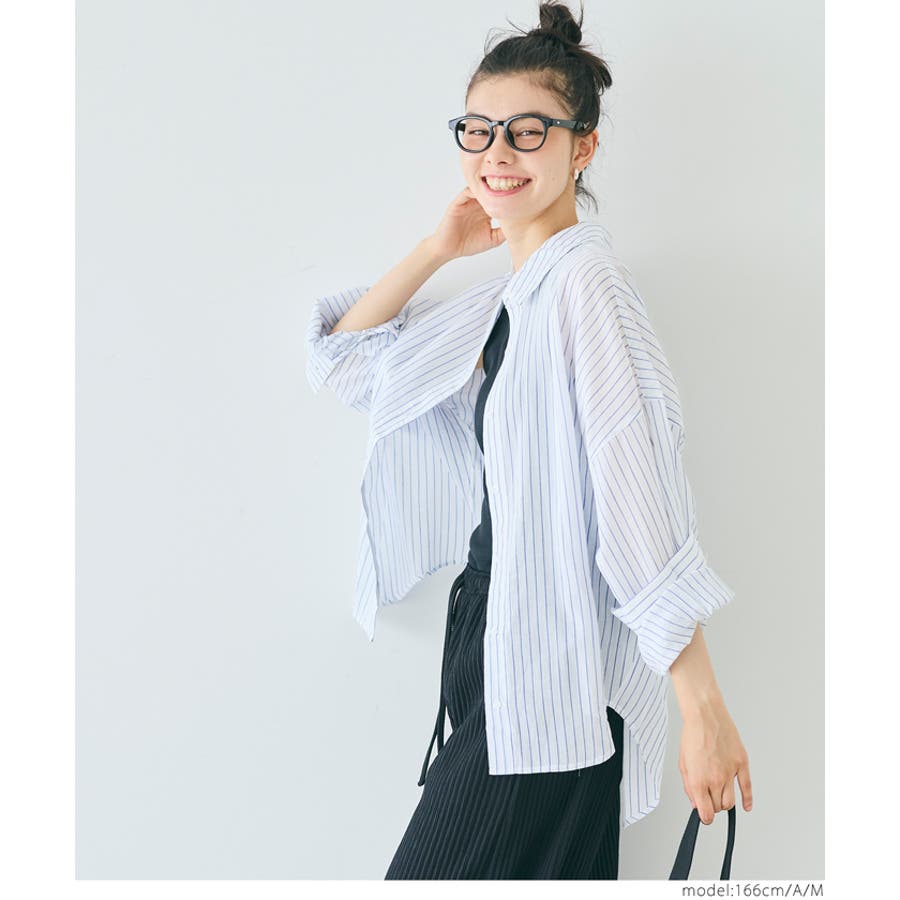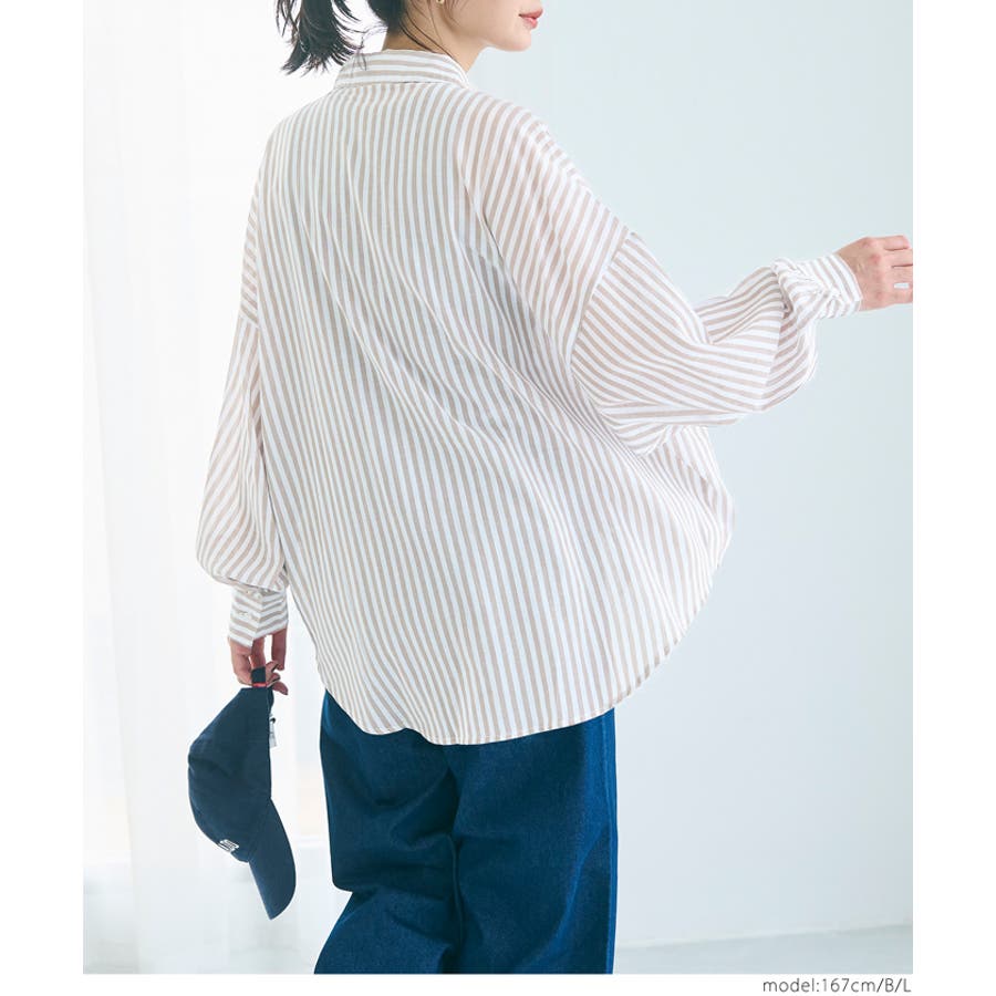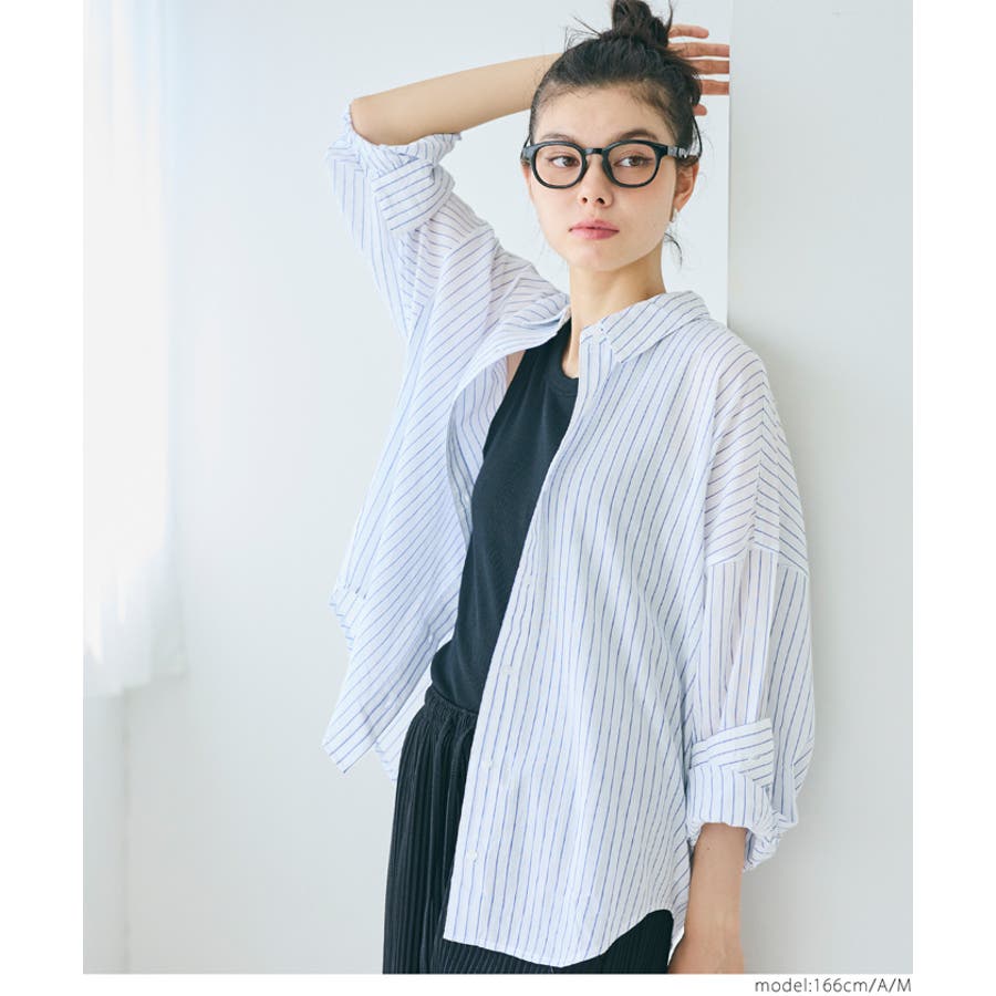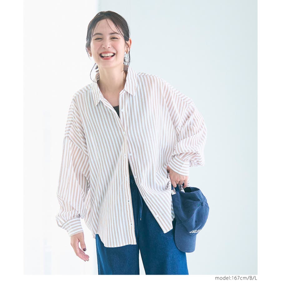 軽やかな透け感とストライプ柄が絶妙にマッチした、シアーコットンビッグシャツ