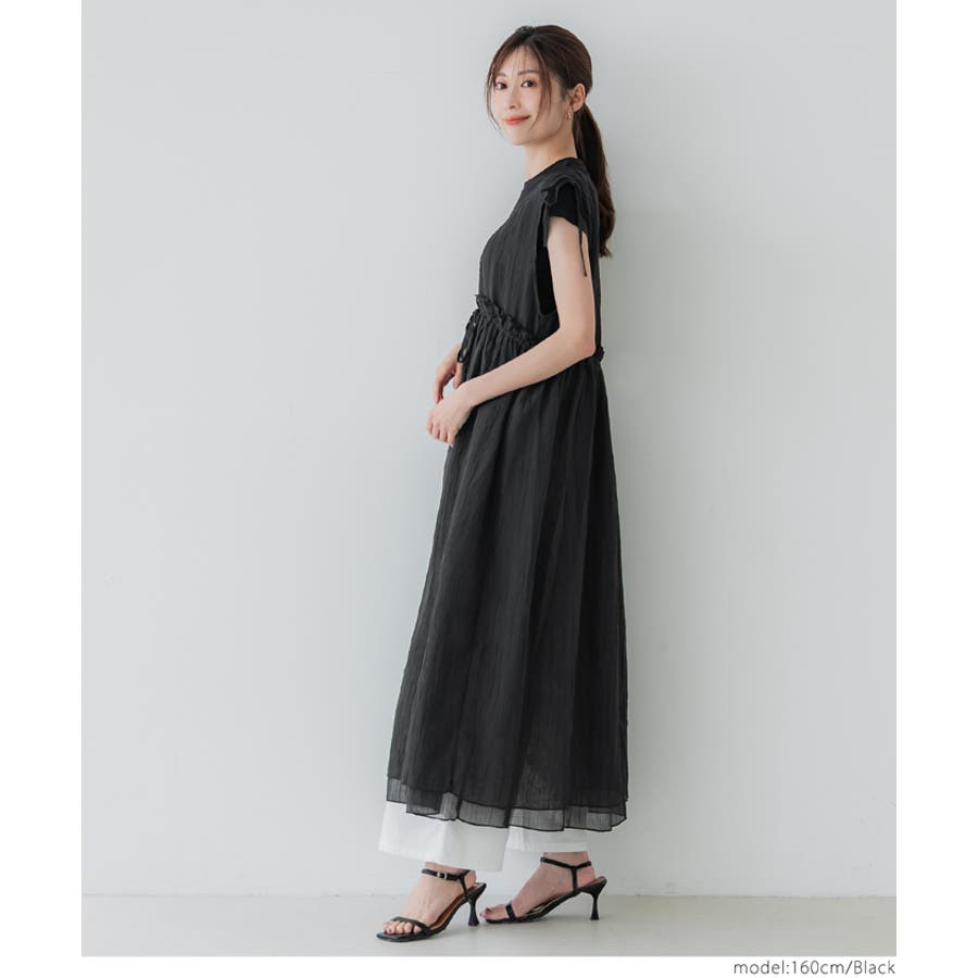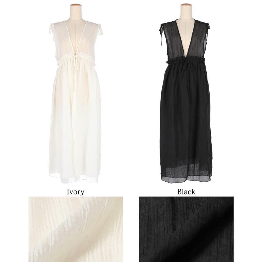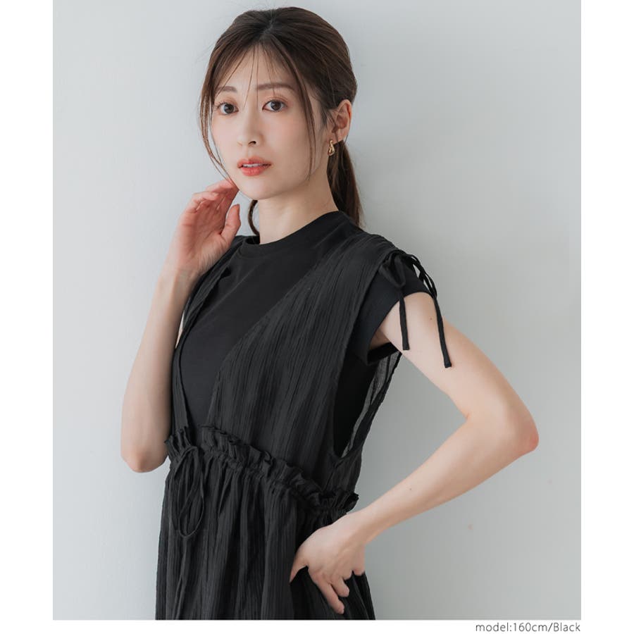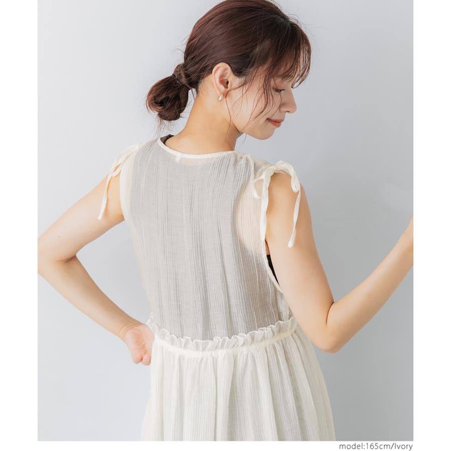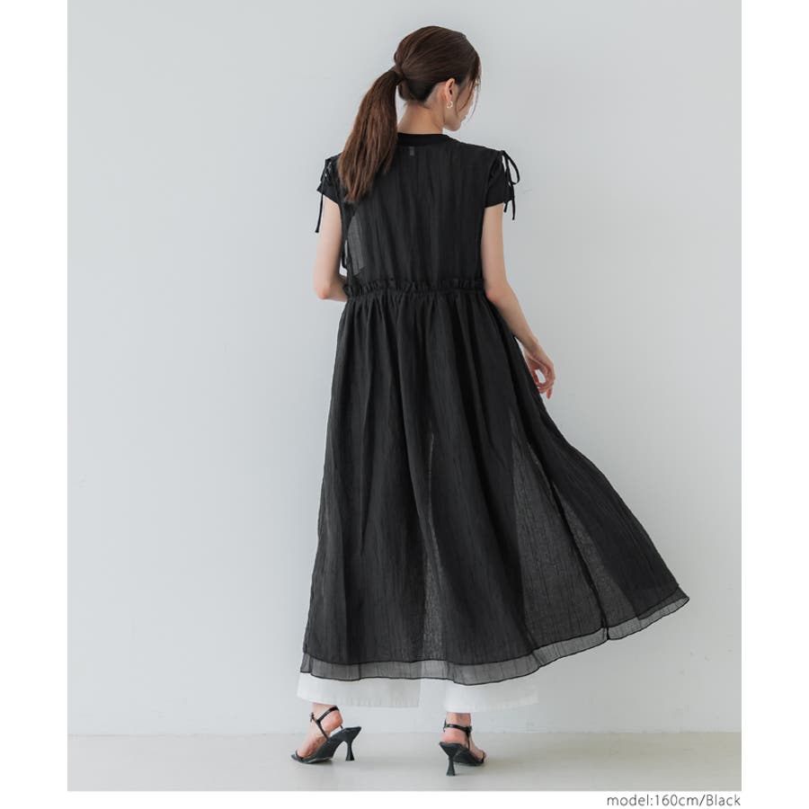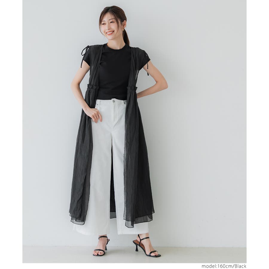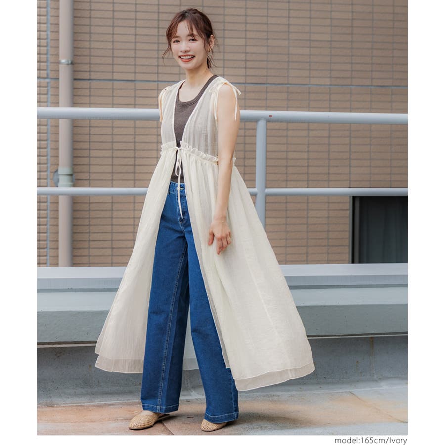 ワンピース ジレ 前開き 重ね着 透け感 シアー ギャザー ノースリーブ リボン紐 羽織り カジュアル ロング丈 25ss コカ COCA coca COCA coca おしゃれ 可愛い きれいめ おとな 大人 女性ファッション 体系カバー 韓国 夏服 夏 カジュアル プチプラ 10代 20代 30代 40代 50代 オフィス シンプル