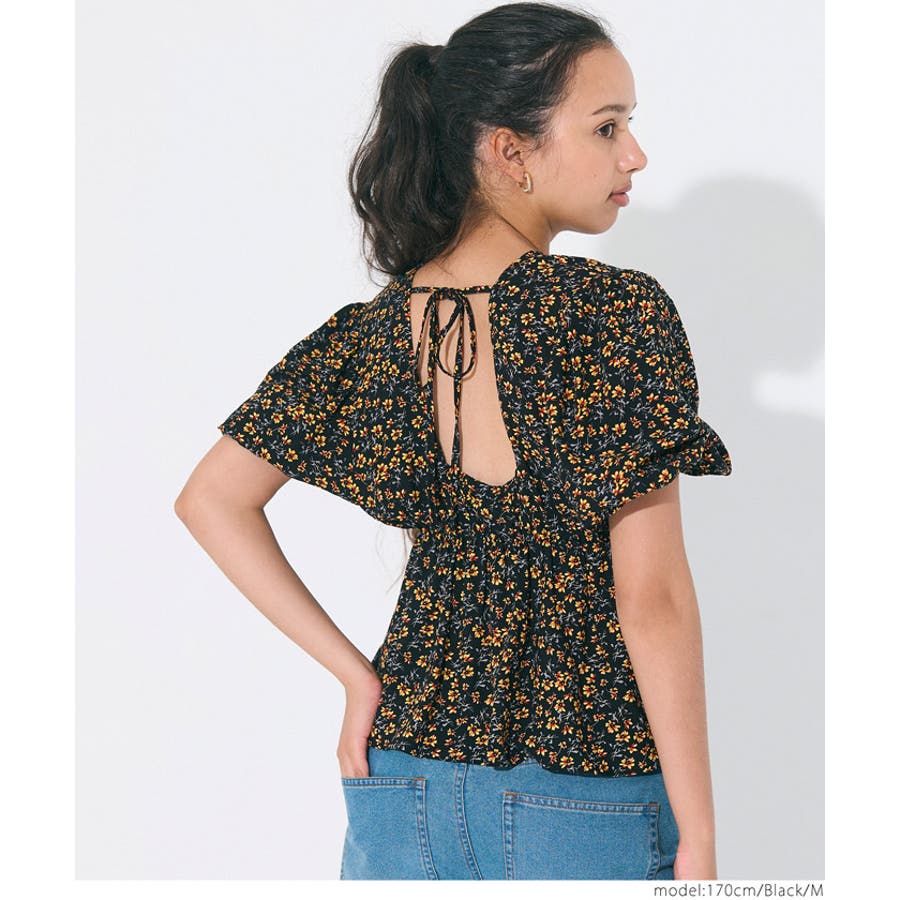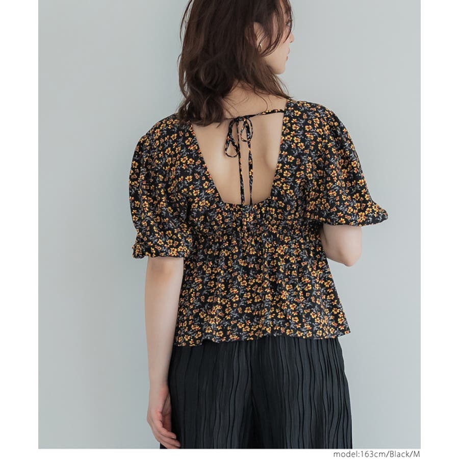 バックリボン×ビンテージフラワーが映える、着映えブラウス