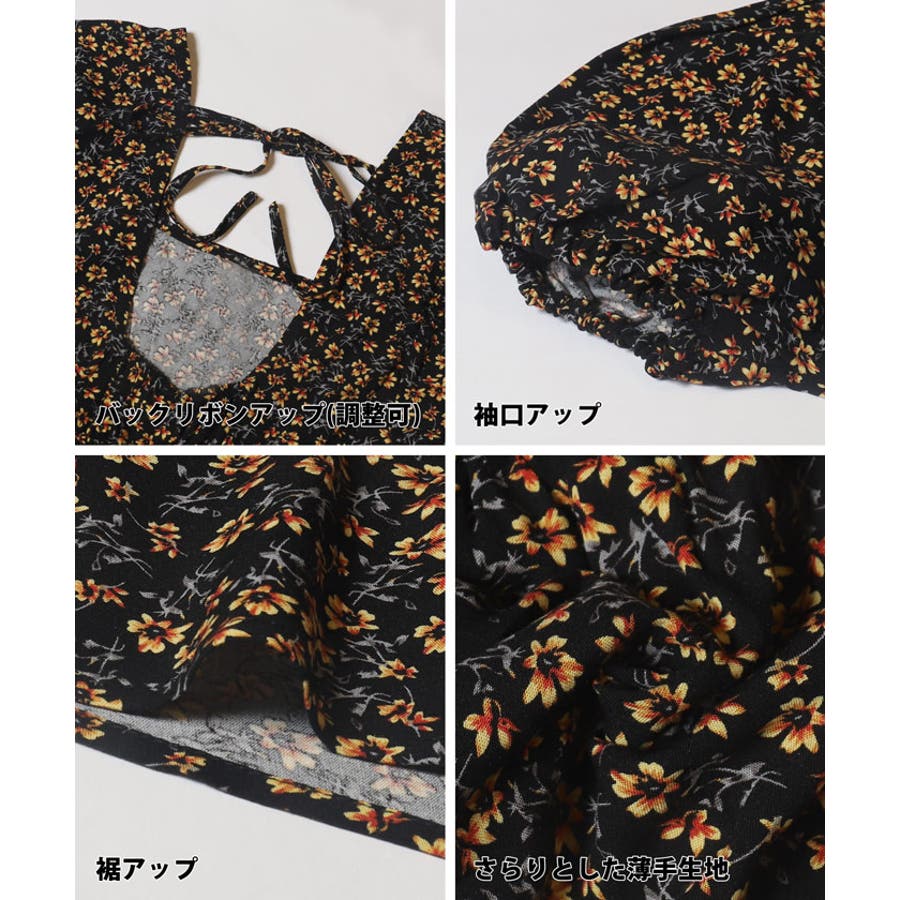 大人っぽいビンテージ調のフラワープリントが全体にあしらわれ、1枚で主役級の華やかさを演出します。
