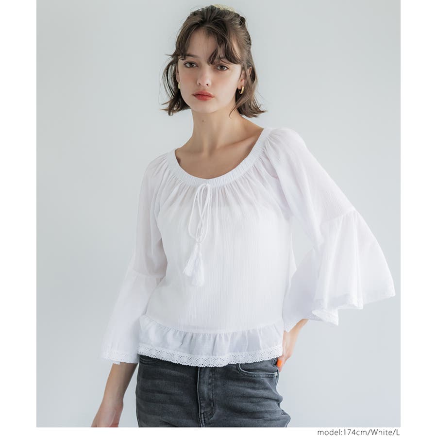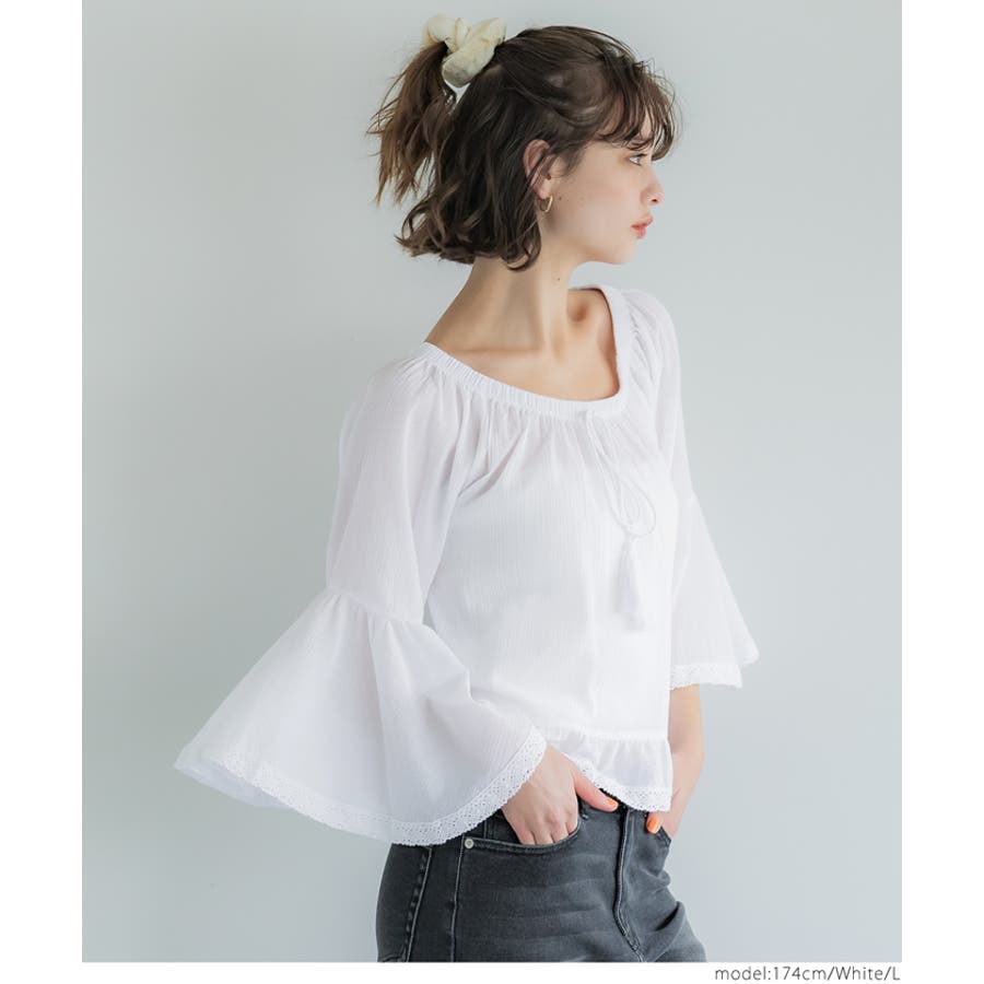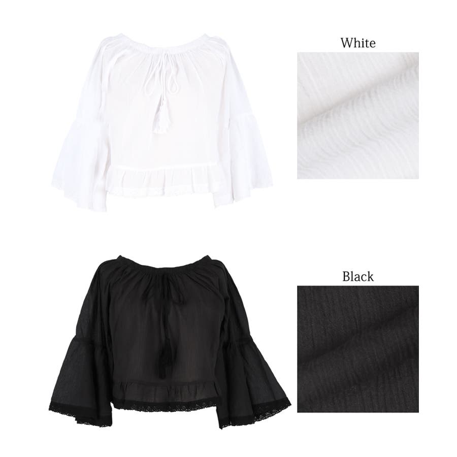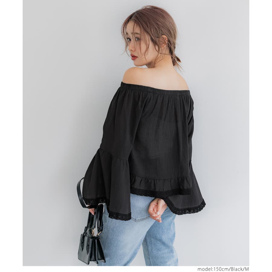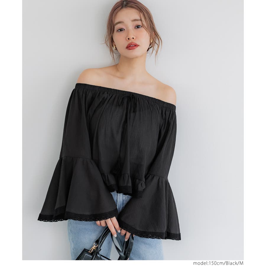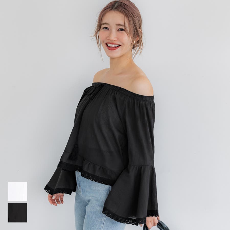 トップス ブラウス レース ゴム リボン フレア 透け感 オフショルダー 綿100 ガーリー 短丈 クロップド丈 無地 25ss コカ COCA coca COCA coca おしゃれ 可愛い きれいめ おとな 大人 女性ファッション 韓国 春服 夏服 春 夏 カジュアル プチプラ 10代 20代 30代 40代 50代 オフィス ホーム シンプル