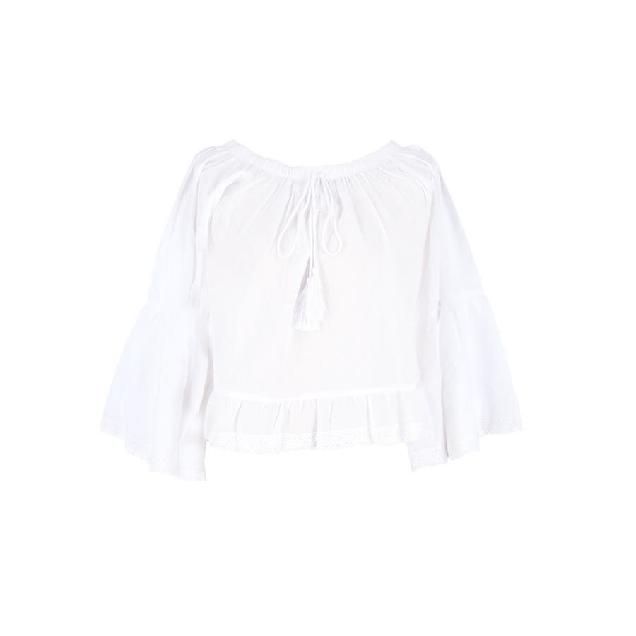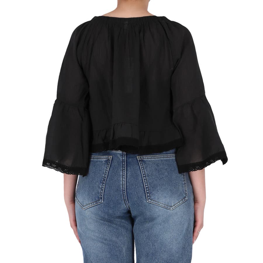 華やかレースとフレアシルエットが映えるクロップドブラウス