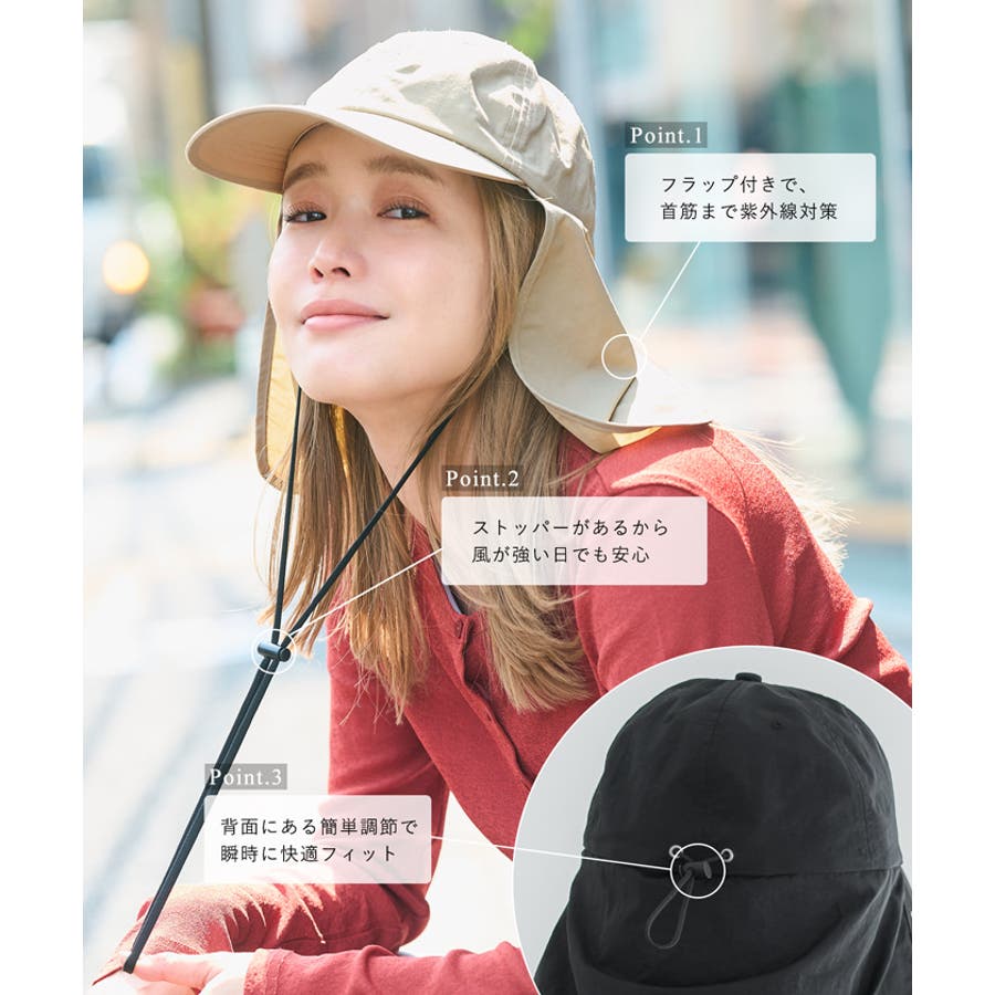 UVカット&撥水加工で機能性抜群のフラップ付きキャップ