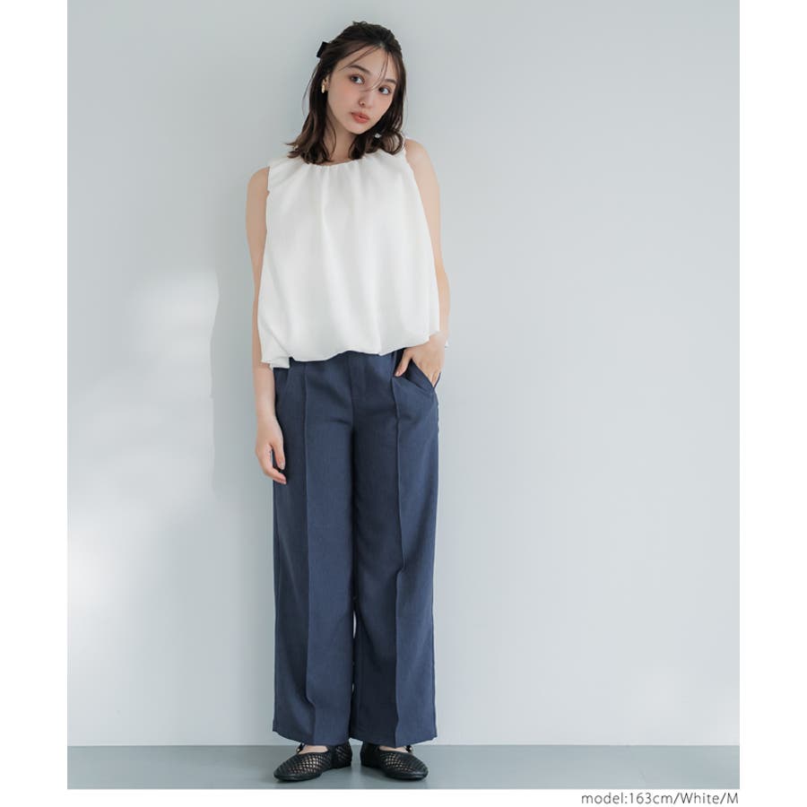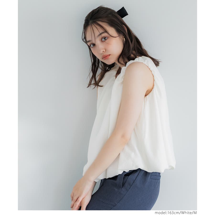 ふんわりとしたシルエットが女性らしさを引き立てる、トレンドライクなバルーンノースリーブブラウス