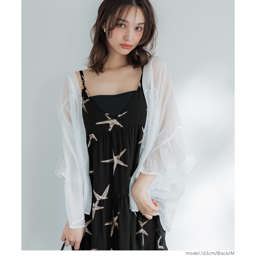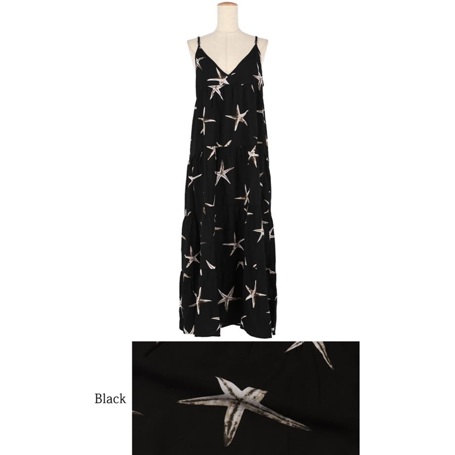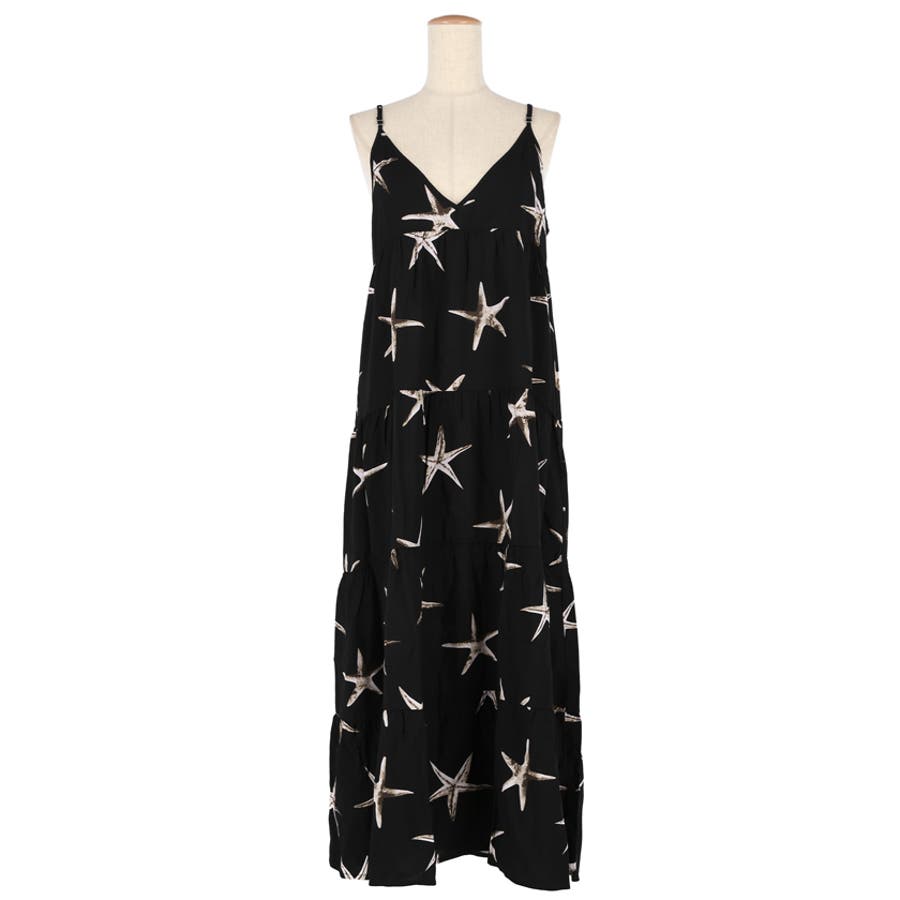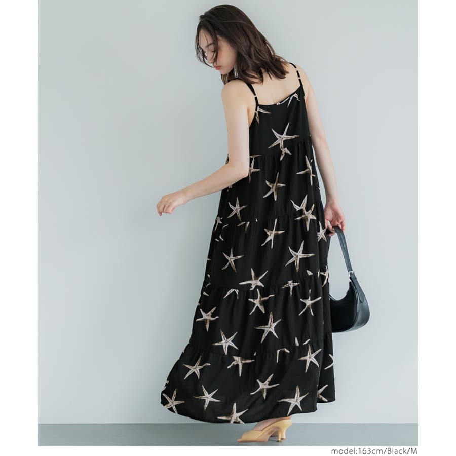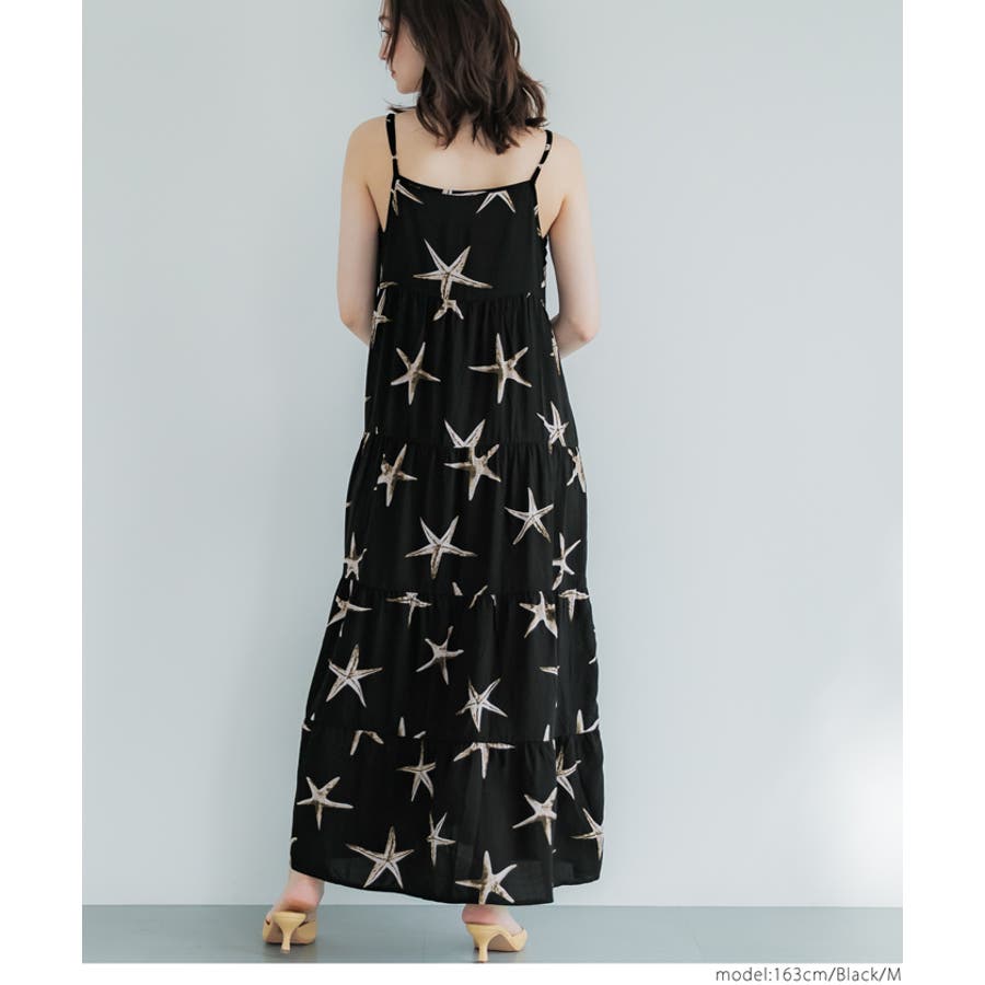 ヒトデ柄のリゾート風ティアードワンピース