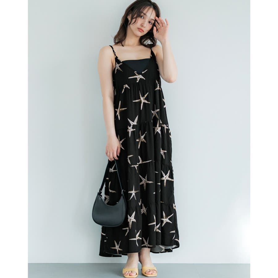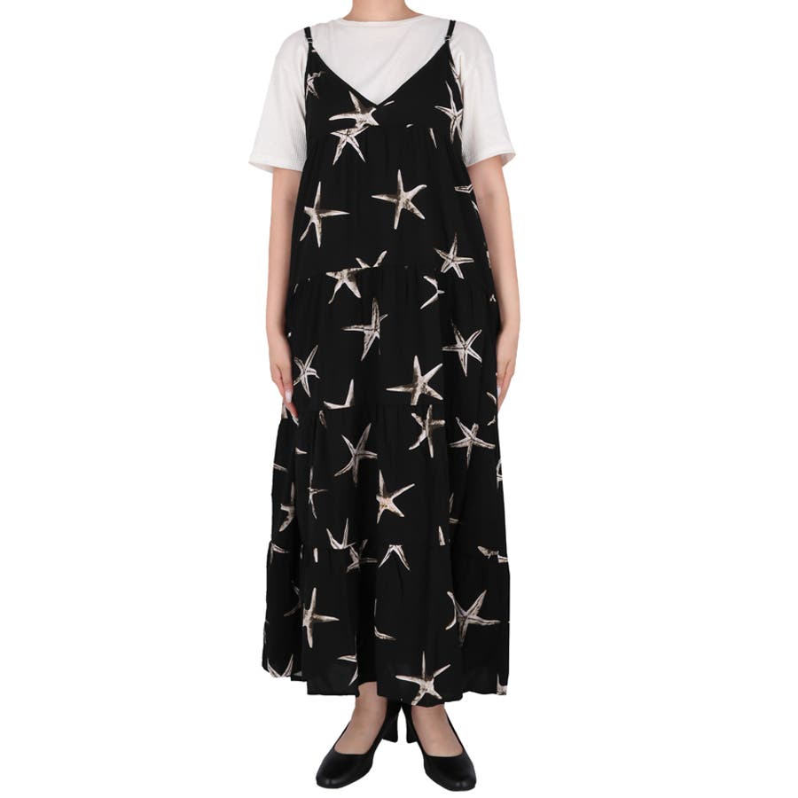 ワンピース ロング キャミワンピ ティアード ティアードワンピース 重ね着 ロング丈 肩紐調節可 柄 カジュアル シンプル 25ss コカ COCA coca COCA coca おしゃれ 可愛い きれいめ おとな 大人 女性ファッション 韓国 春服 夏服 春 夏 カジュアル プチプラ 10代 20代 30代 40代 50代 オフィス ホーム シンプル