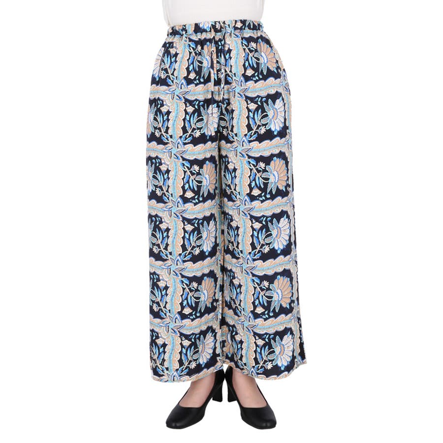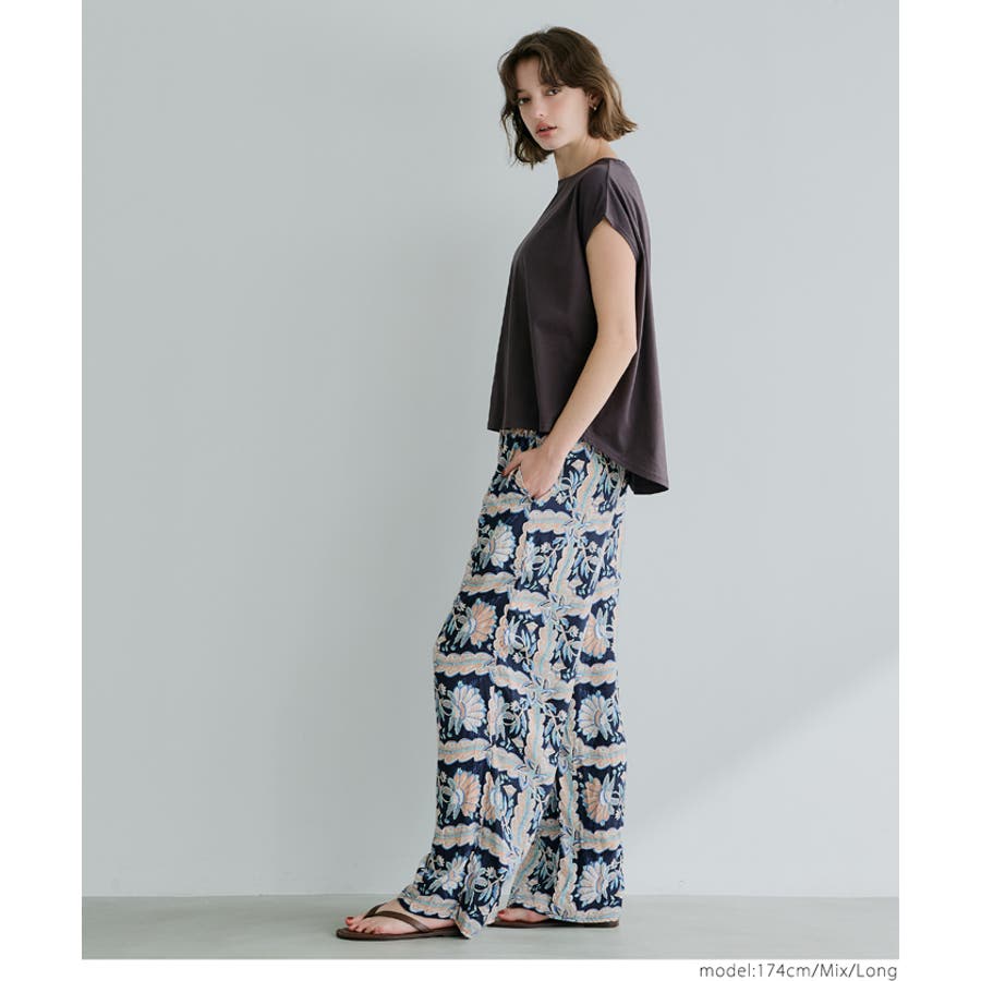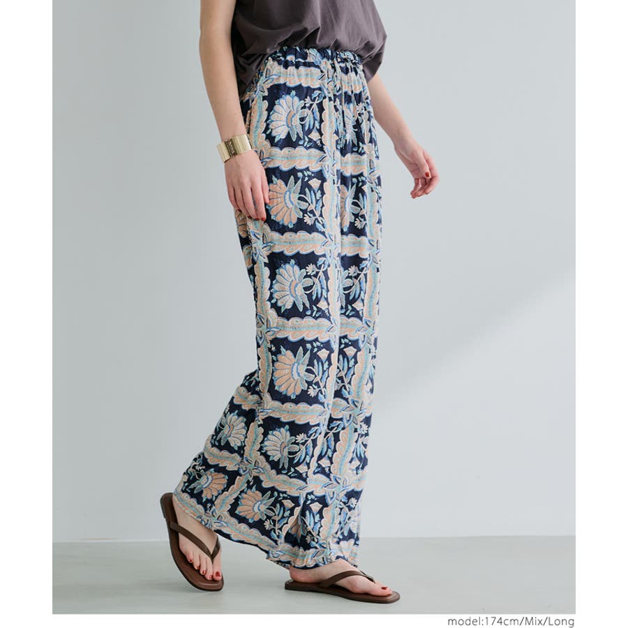とろみ素材と花柄が映える、大人カジュアルなレーヨンフラワーパンツ