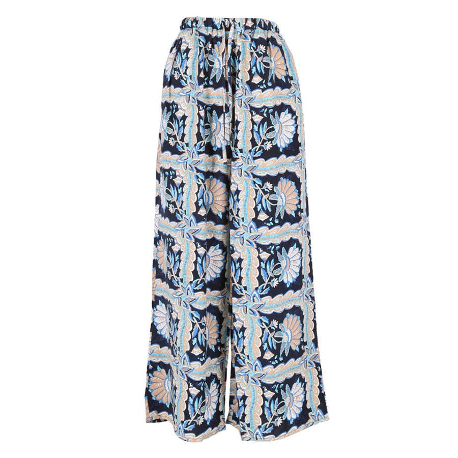 動くたびに揺れる、軽やかなワイドシルエットが魅力のフラワー柄パンツ。
