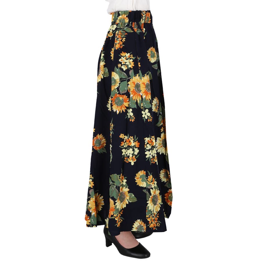 美しいドレープが魅力の、大きな花柄が印象的なフレアスカート。