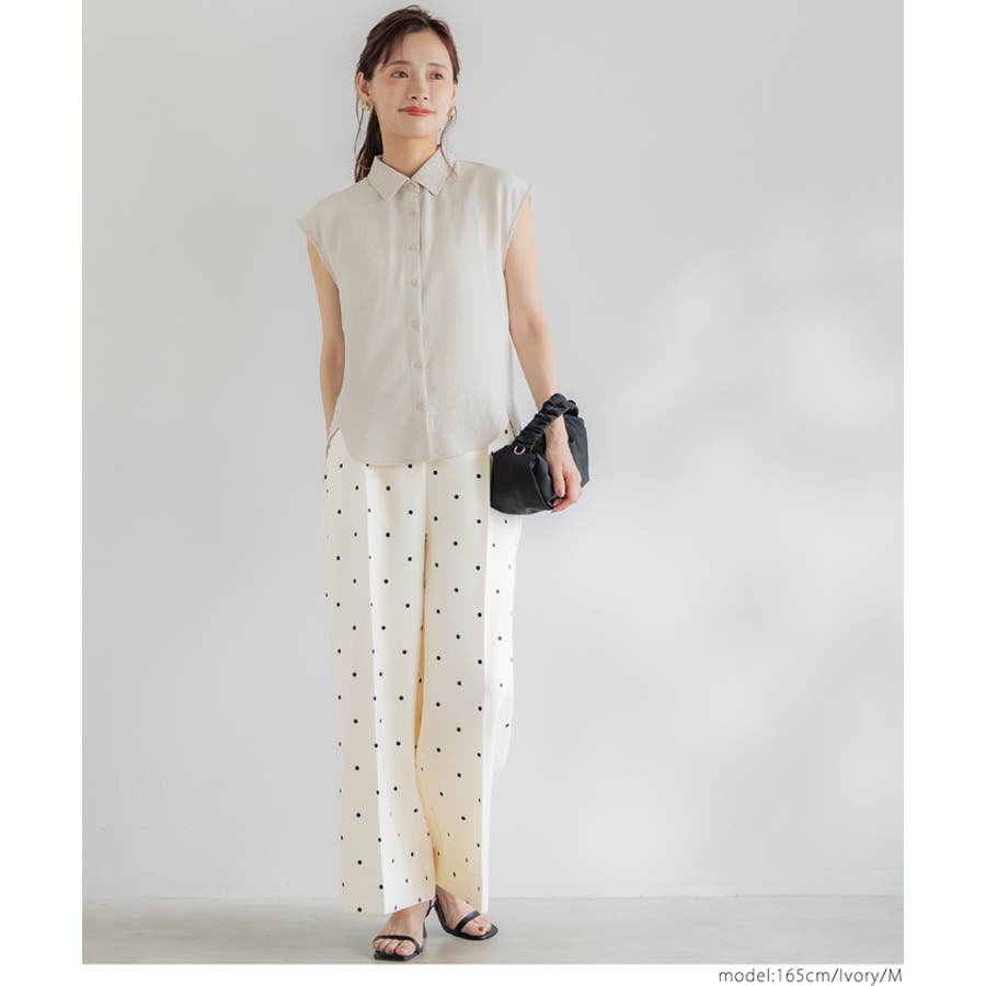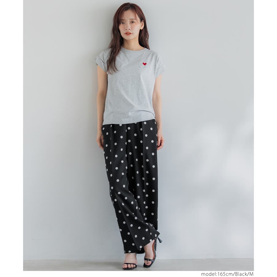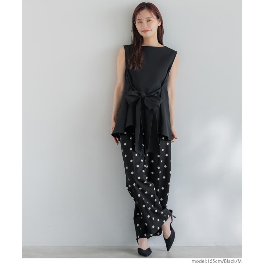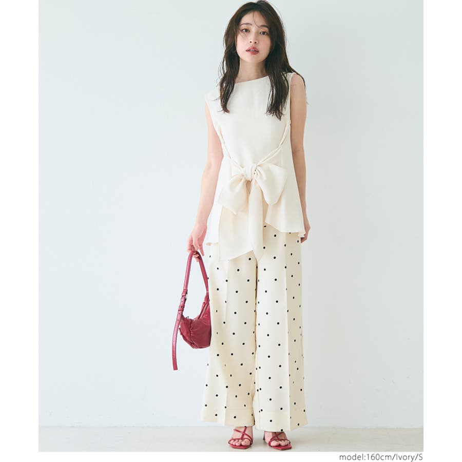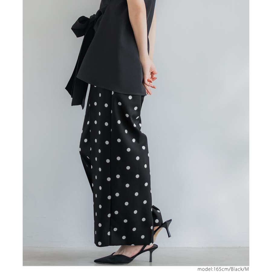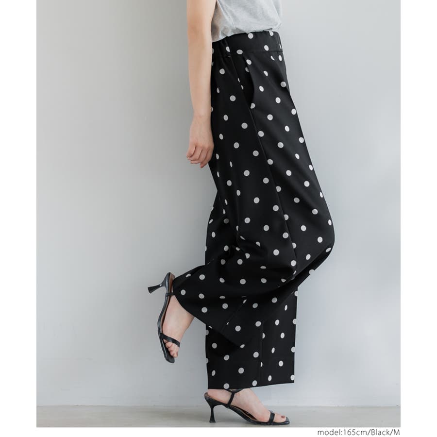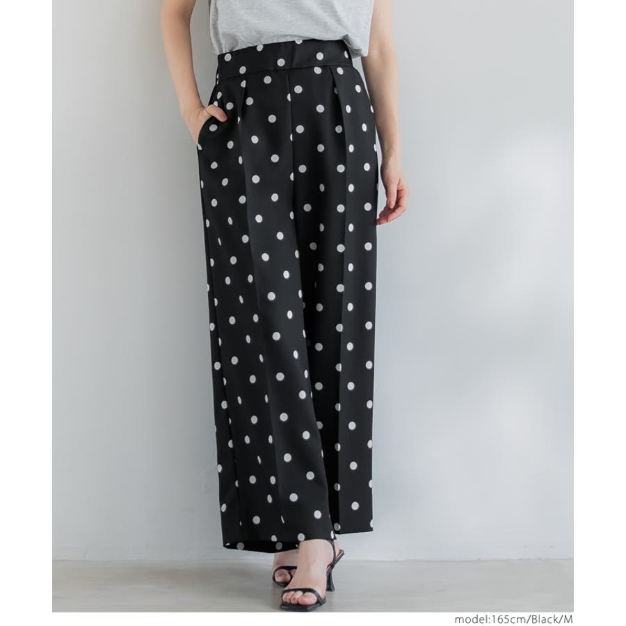 華やかさと美シルエットを両立◎ ドット柄センタープレスワイドパンツ