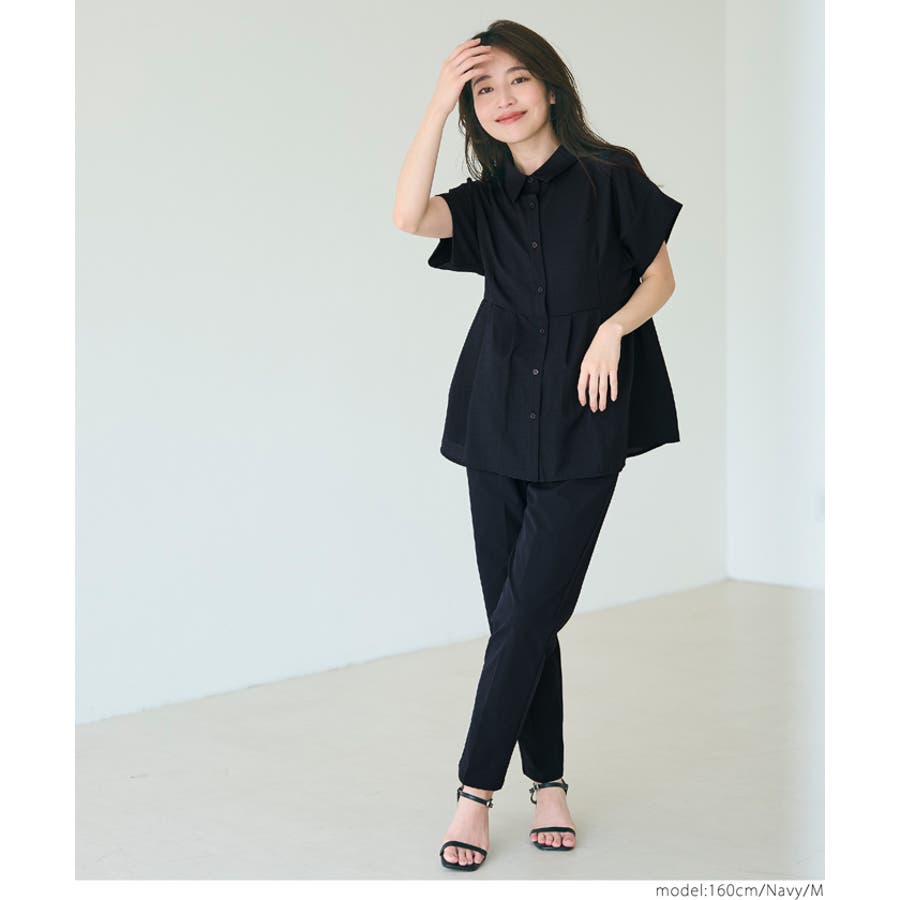軽やかなサッカー生地とペプラムシルエットが魅せる、きれいめカジュアルブラウス