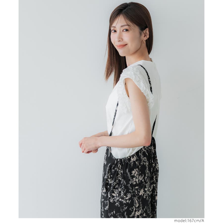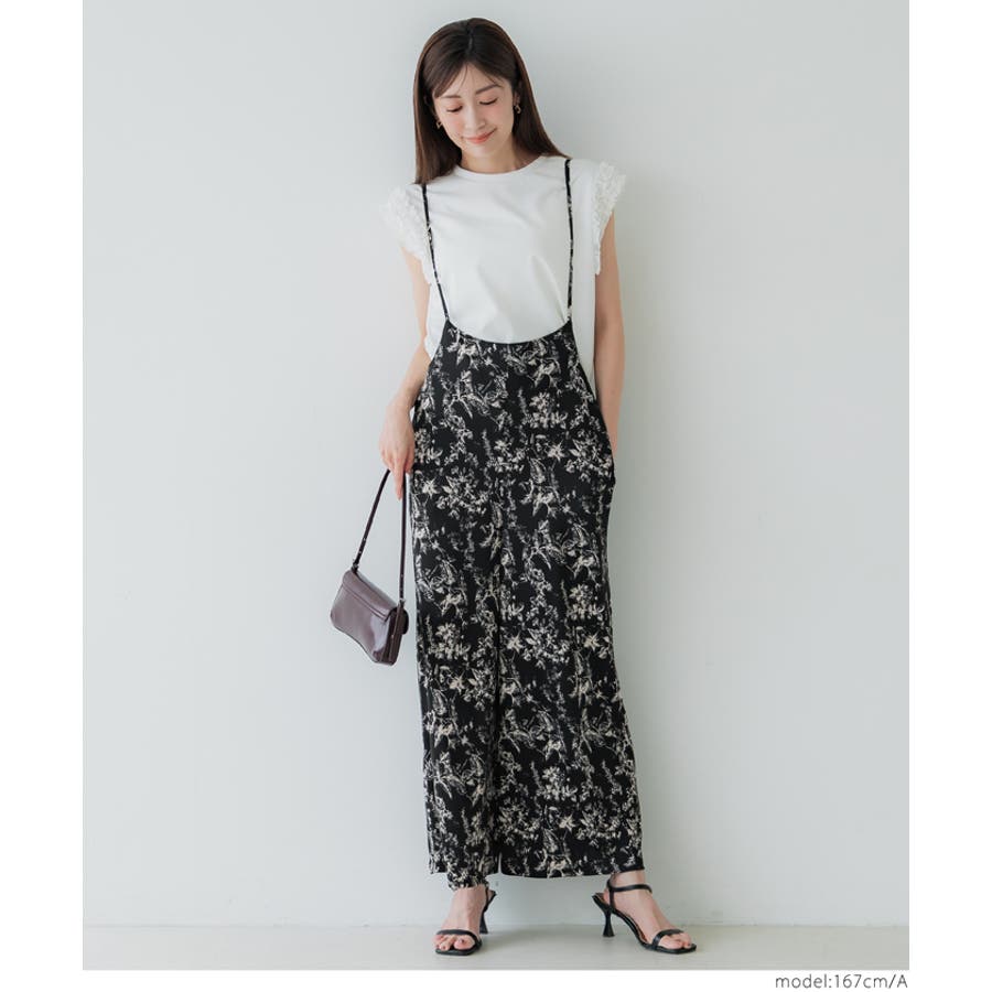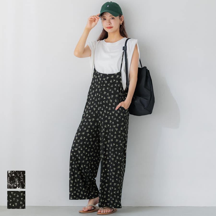 繊細なフラワープリントが華やかなリラックスオールインワン