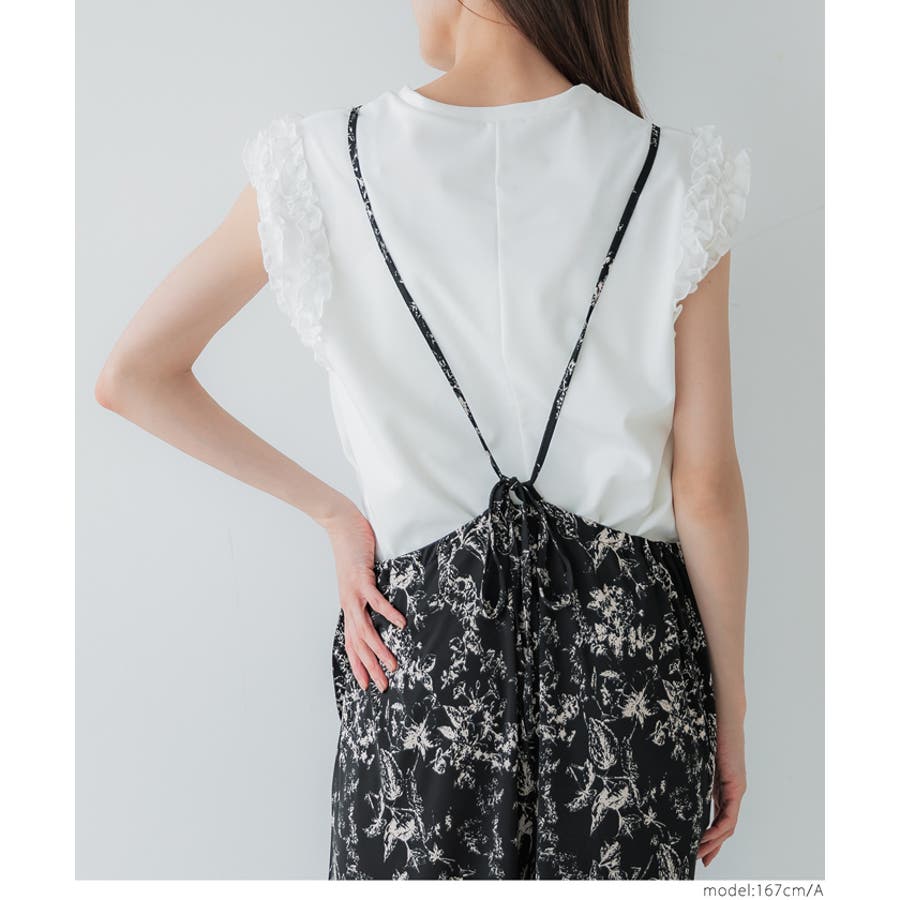オールインワン パンツ リラックス 重ね着 リボン ロング丈 花柄 フラワー シンプル カジュアル キレイめ 25ss コカ COCA coca COCA coca おしゃれ 可愛い きれいめ おとな 大人 女性ファッション 体系カバー 韓国 夏服 夏 カジュアル プチプラ 10代 20代 30代 40代 50代 オフィス シンプル