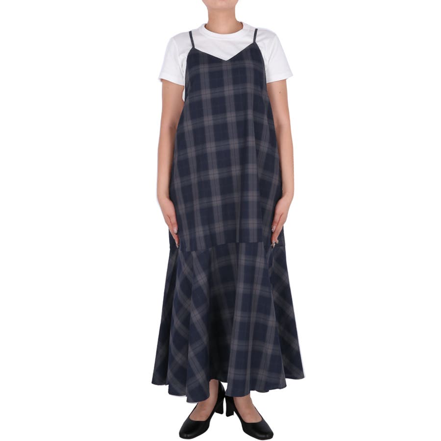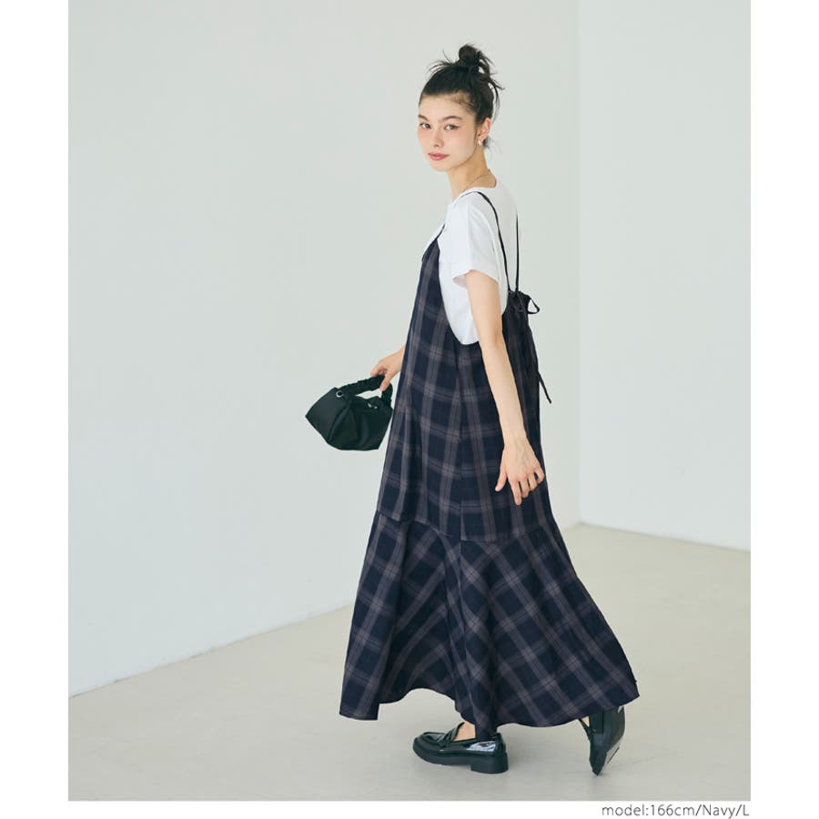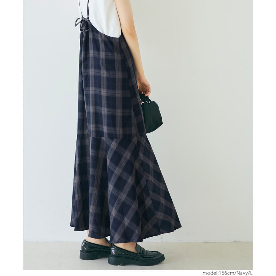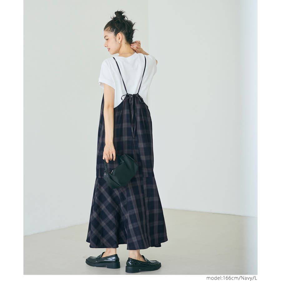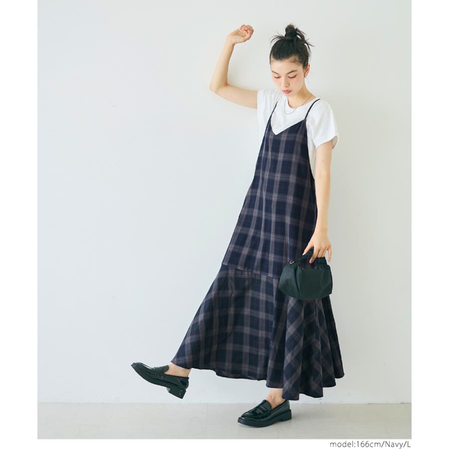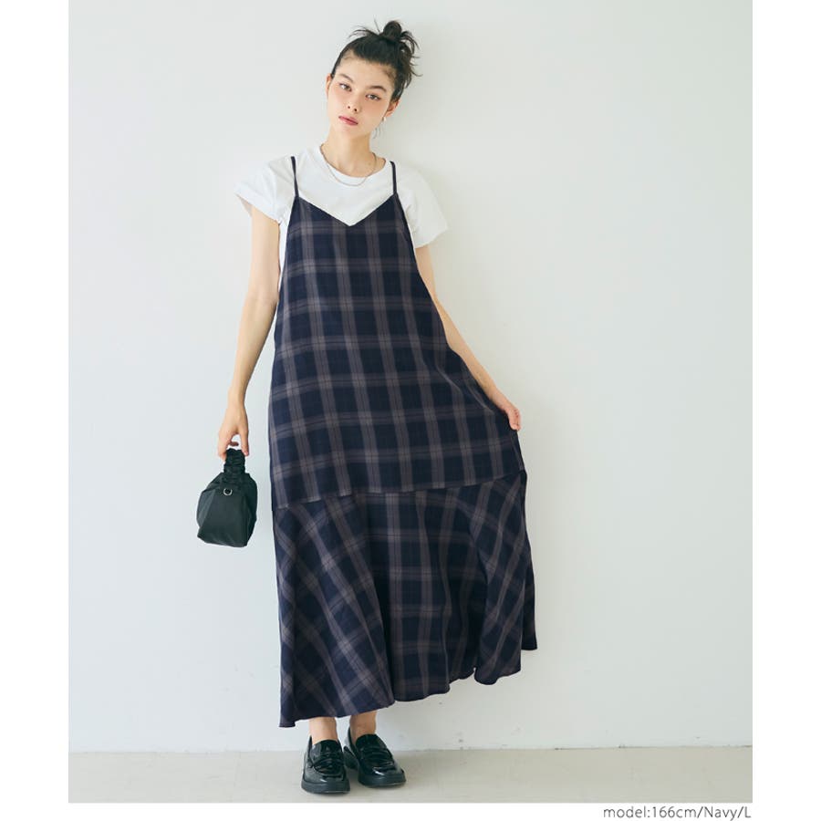 秋の気分をぐっと高めてくれる、チェックキャミワンピース