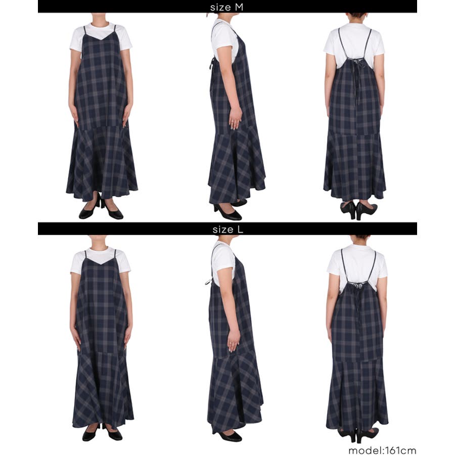 ワンピース チェック キャミワンピ バックリボン 切り替え フレア ロング丈 ゆったり カジュアル 25aw コカ COCA coca COCA coca おしゃれ 可愛い きれいめ おとな 大人 女性ファッション 体系カバー 韓国 夏服 夏 秋 秋服 カジュアル プチプラ 10代 20代 30代 40代 50代 オフィス シンプル