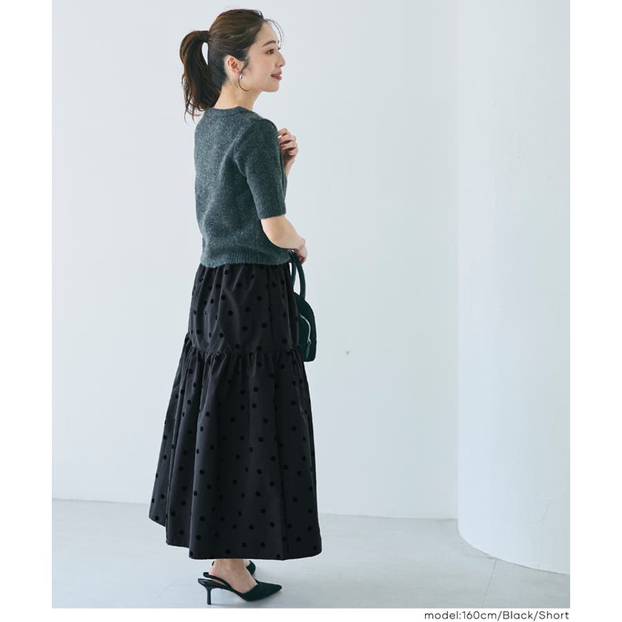 大人上品に、フロッキープリントが映えるティアードスカート