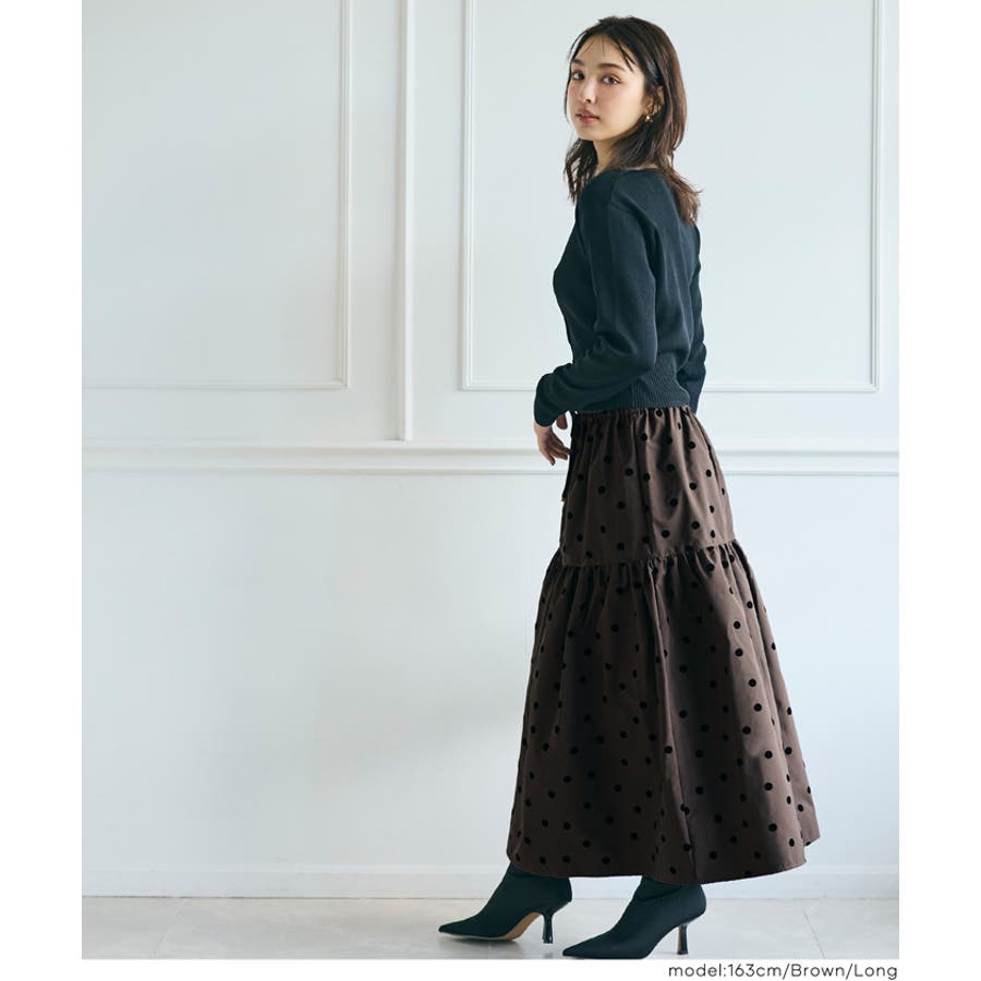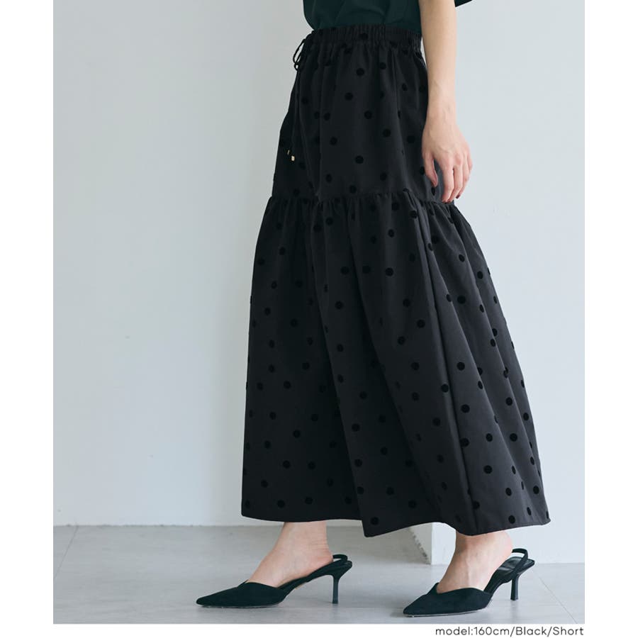 ボトムス スカート ロングスカート ロンスカ ティアードスカート マキシ丈 ウエストゴム 水玉 ドット ポリエステル シンプル 25aw コカ COCA coca COCA coca おしゃれ 可愛い きれいめ 秋 秋服 冬 冬服 おとな 大人 女性ファッション 韓国 カジュアル プチプラ 10代 20代 30代 40代 50代 オフィス ホーム シンプル