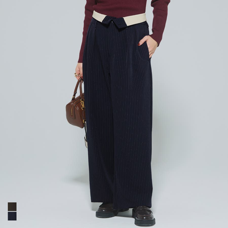 ボトムス パンツ ワイドパンツ ストライプ ウエストデザイン ウエスト折り返し セミフレア きれいめカジュアル ハイウエスト スラックス ボタン フルレングス シンプル GC 25aw コカ COCA coca COCA coca おしゃれ 可愛い きれいめ 秋 秋服 冬 冬服 おとな 大人 女性ファッション 韓国 カジュアル プチプラ 10代 20代 30代 40代 50代 オフィス ホーム シンプル