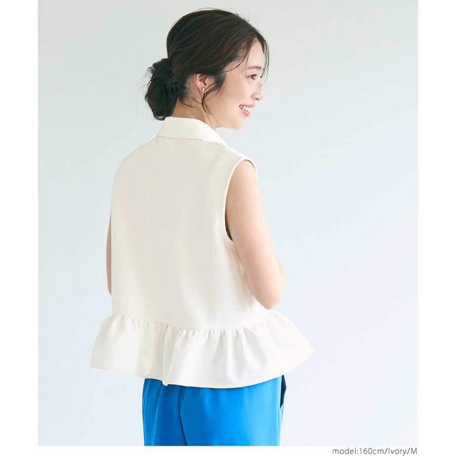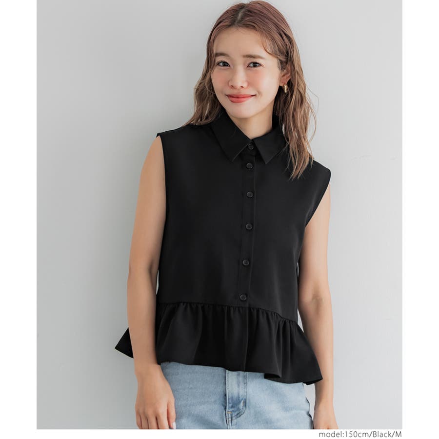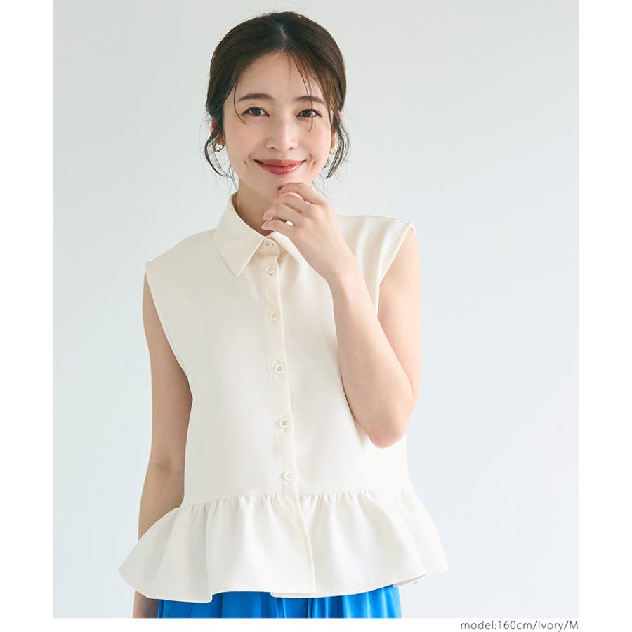 トップス ブラウス ノースリーブ ペプラム 襟付き 前ボタン フレア 切替 シャツ キレイめ 無地 25ss コカ COCA coca COCA coca おしゃれ 可愛い きれいめ おとな 大人 女性ファッション 韓国 春服 夏服 春 夏 カジュアル プチプラ 10代 20代 30代 40代 50代 オフィス ホーム シンプル
