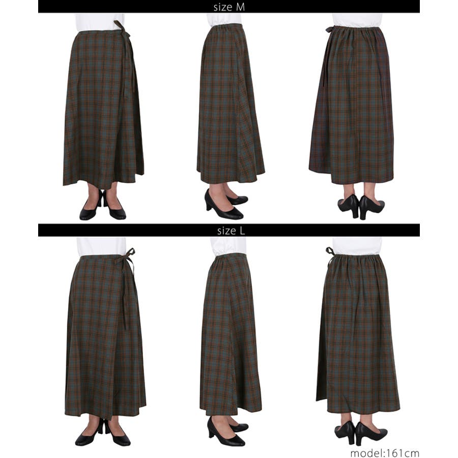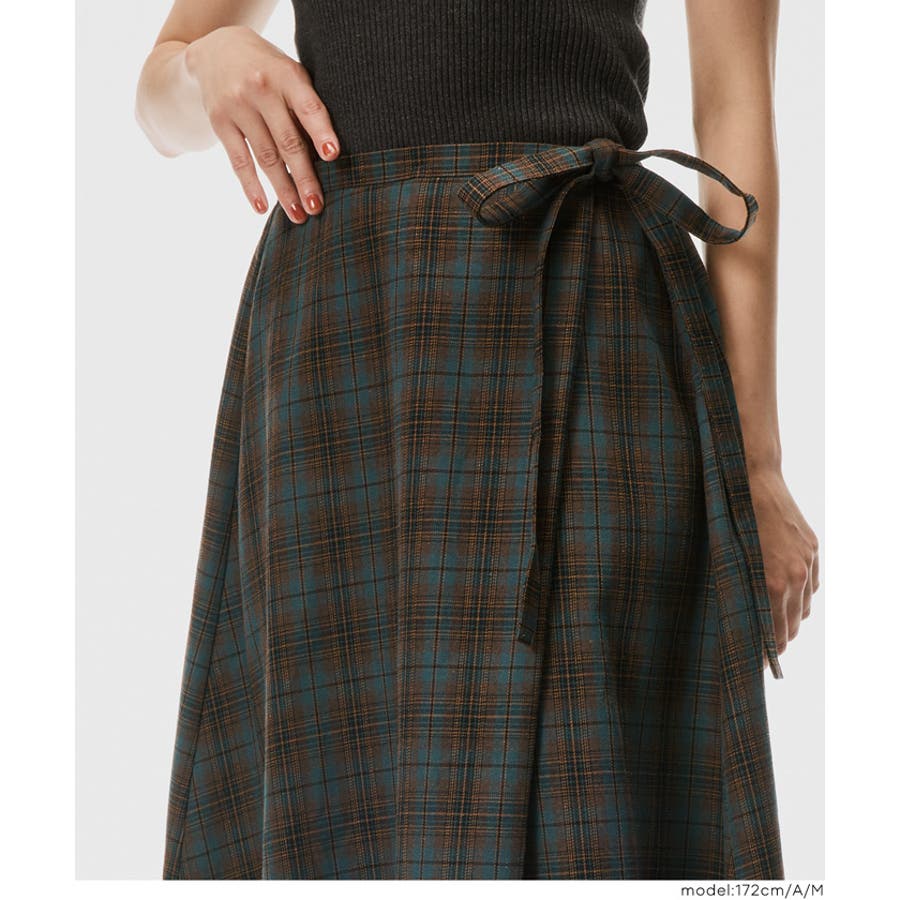 【[A]】トラッドな雰囲気漂うチェック柄が映える、ラップデザインロングスカート