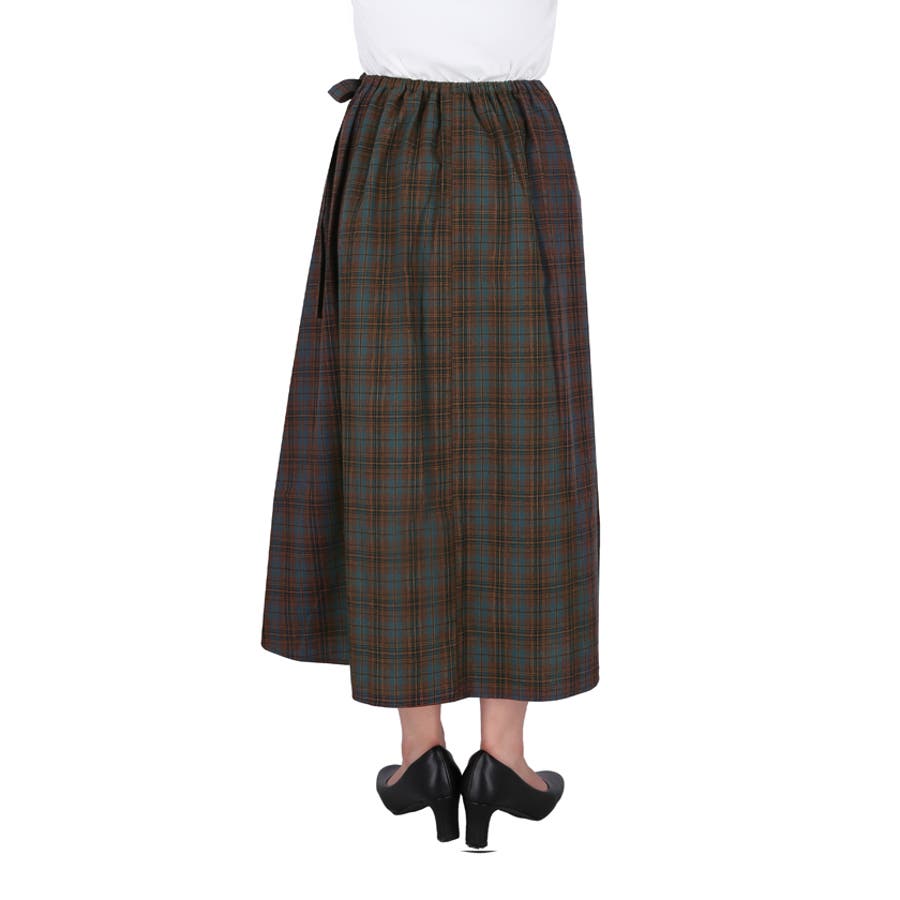 トラッドな雰囲気漂うチェック柄が映える、ラップデザインロングスカート