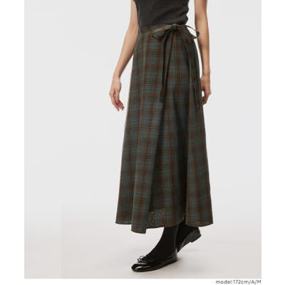 【[B]】トラッドな雰囲気漂うチェック柄が映える、ラップデザインロングスカート