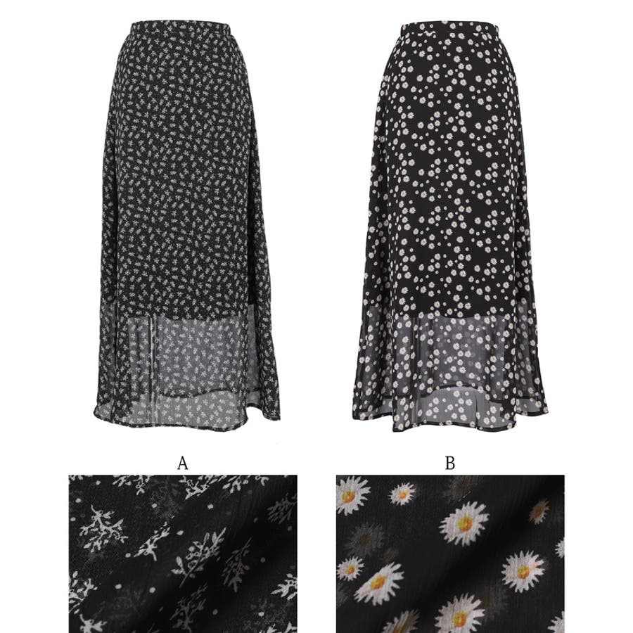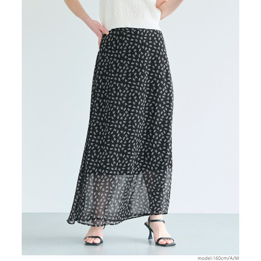 シフォン花柄スカート