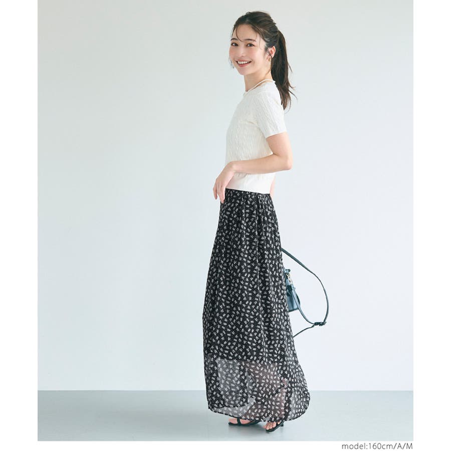 やわらかなシフォン素材に繊細な花柄をあしらった、フェミニンムード漂うロングスカート。