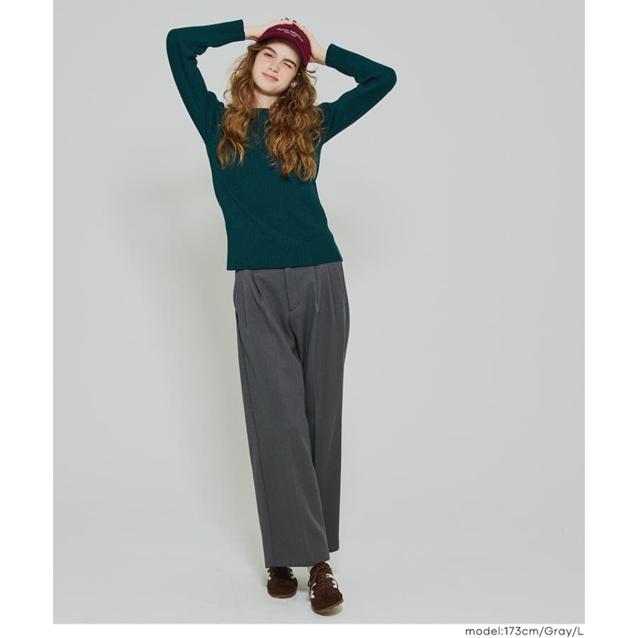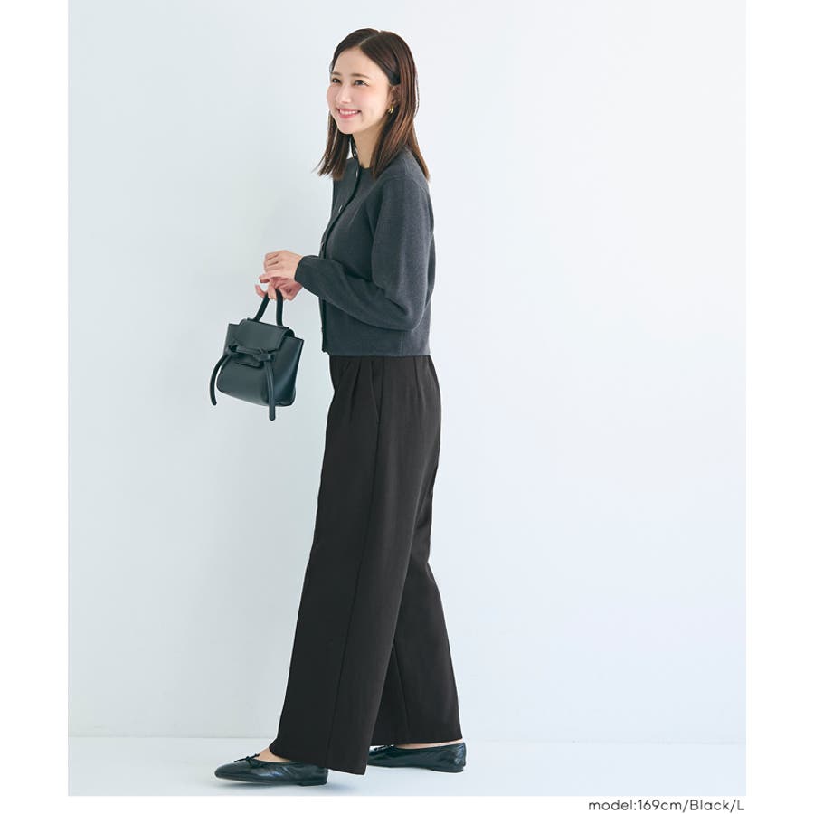 センタープレス入りのワイドシルエットで、脚をまっすぐ美しく見せる上品デザイン。
