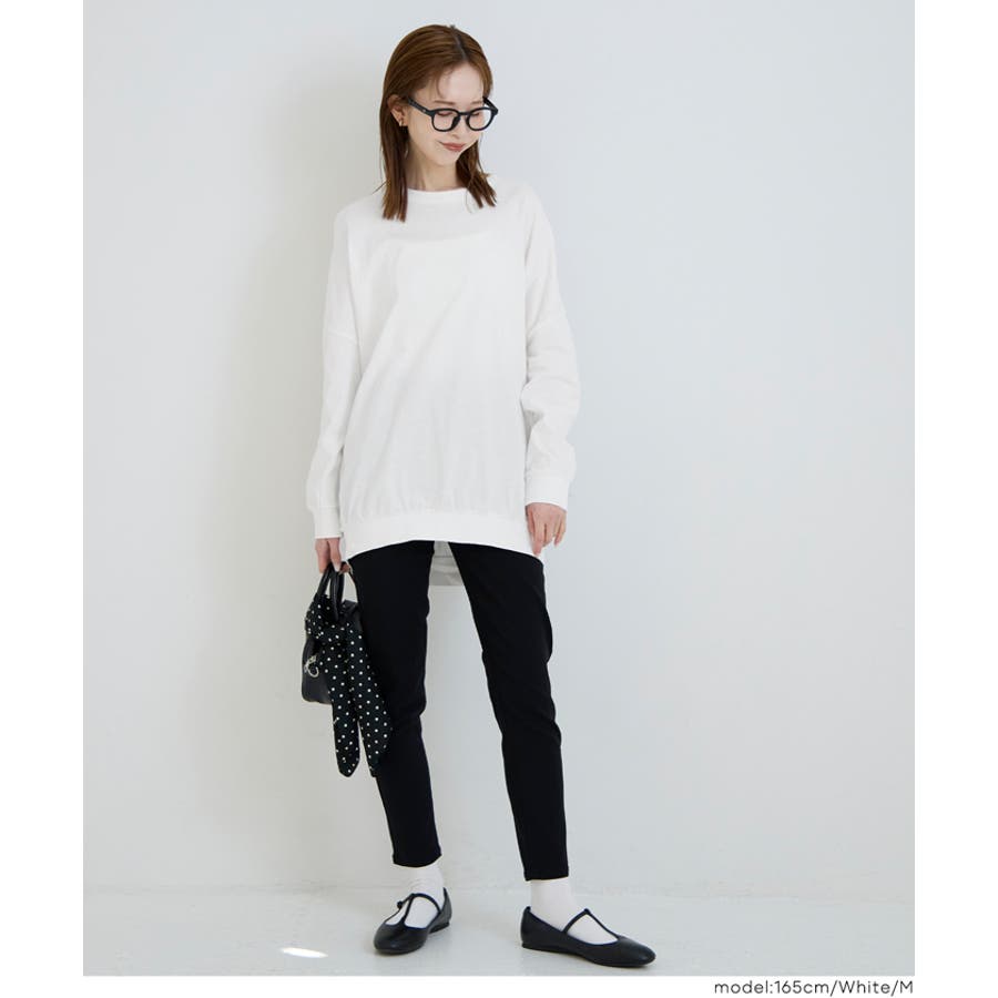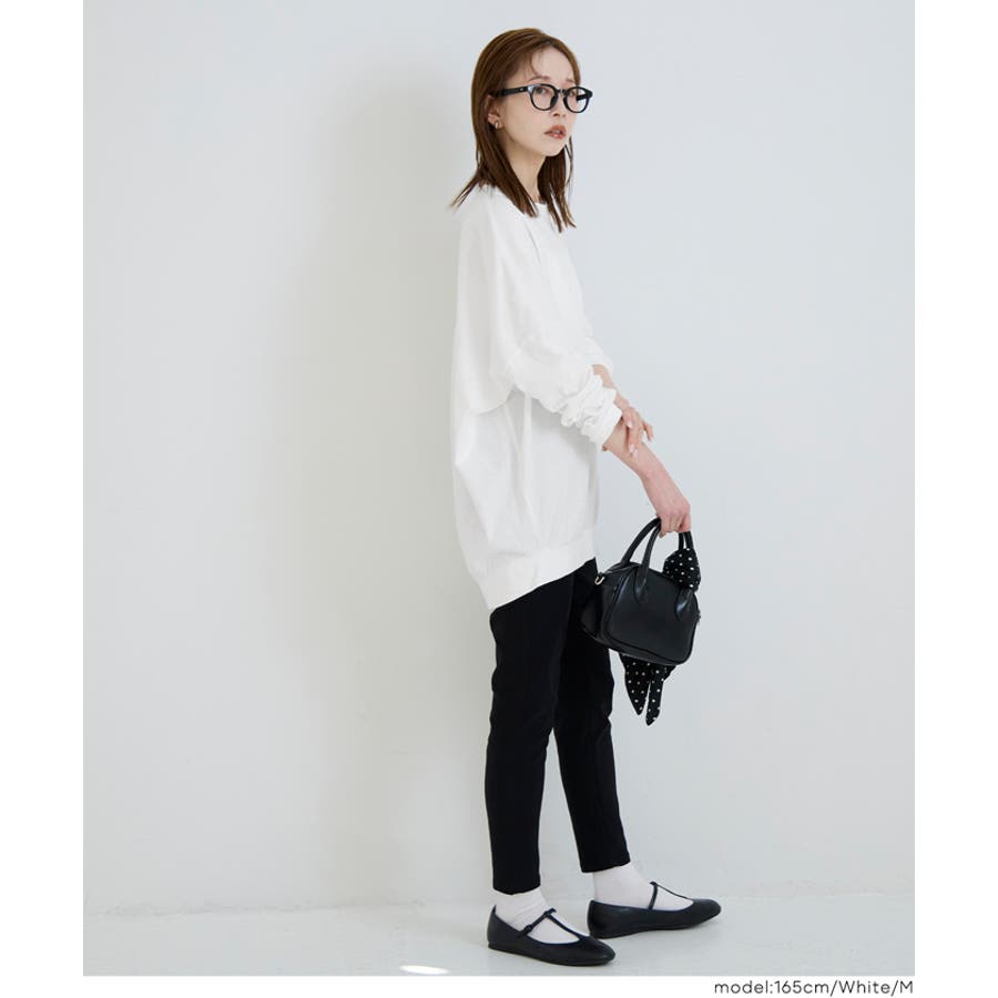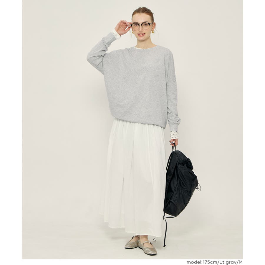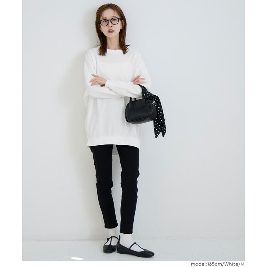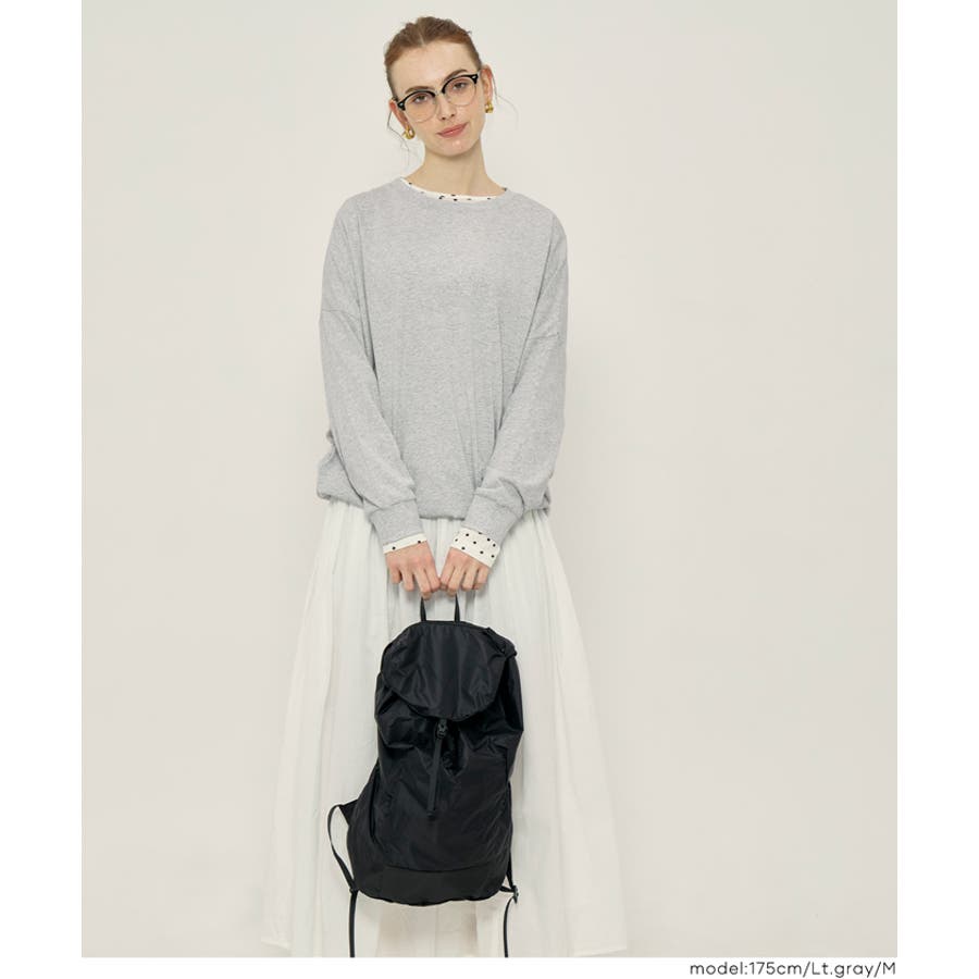 身体のラインを拾いにくいゆったりとしたシルエットで、リラックス感のある着心地です。