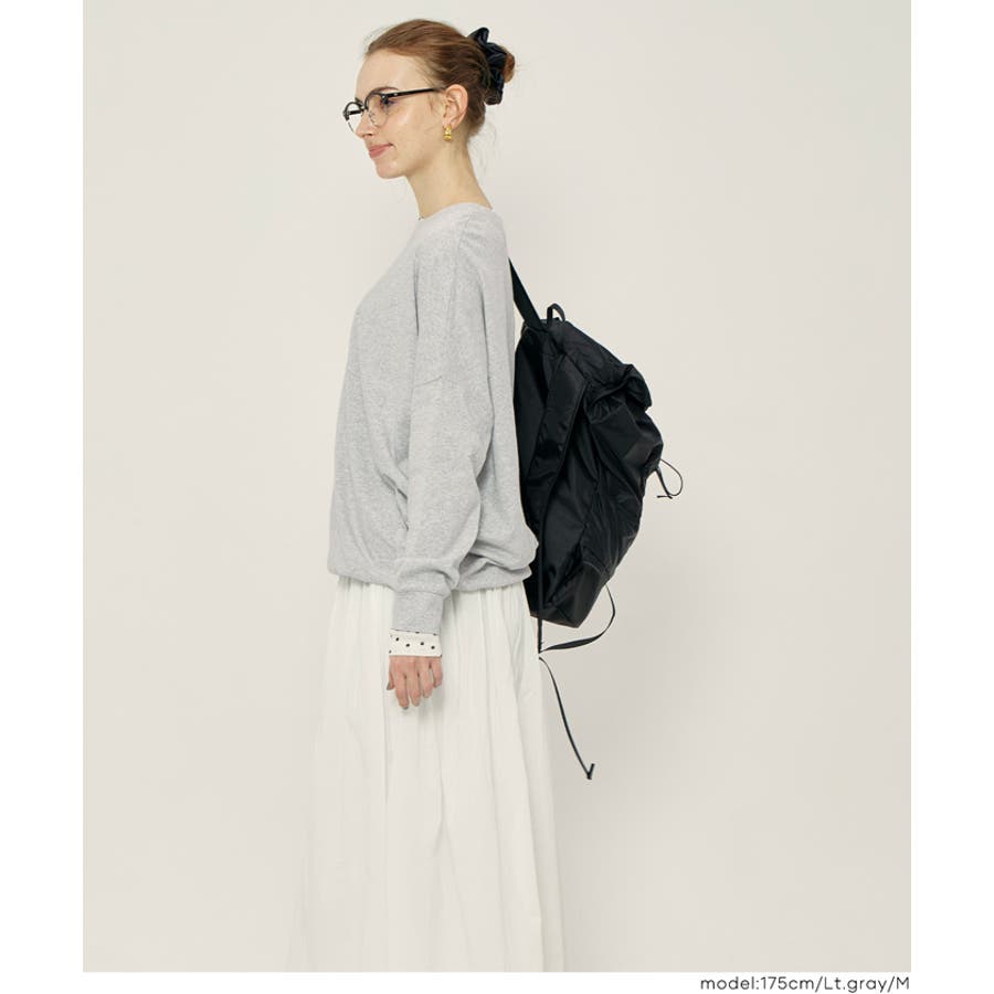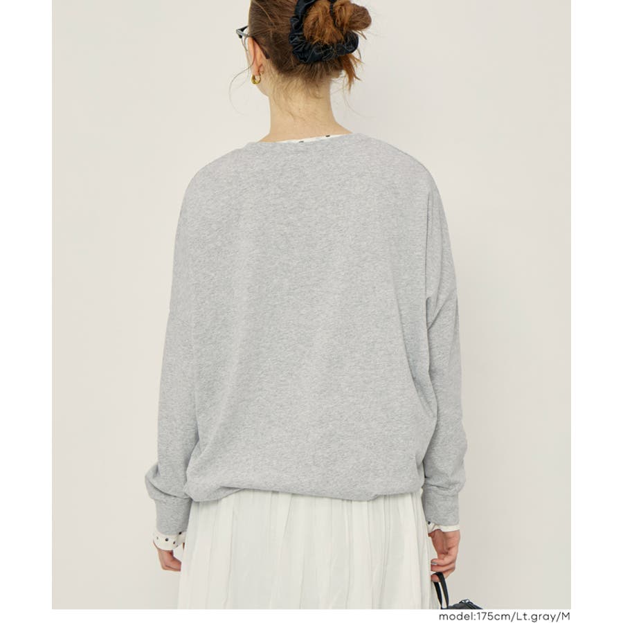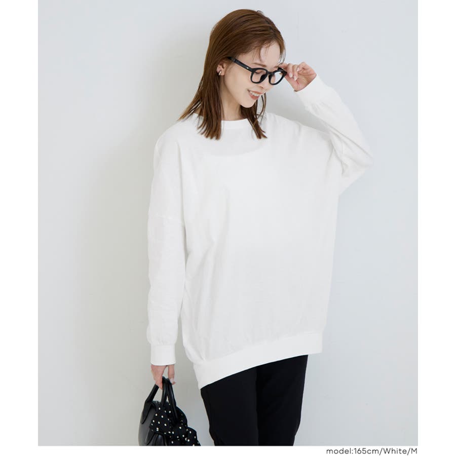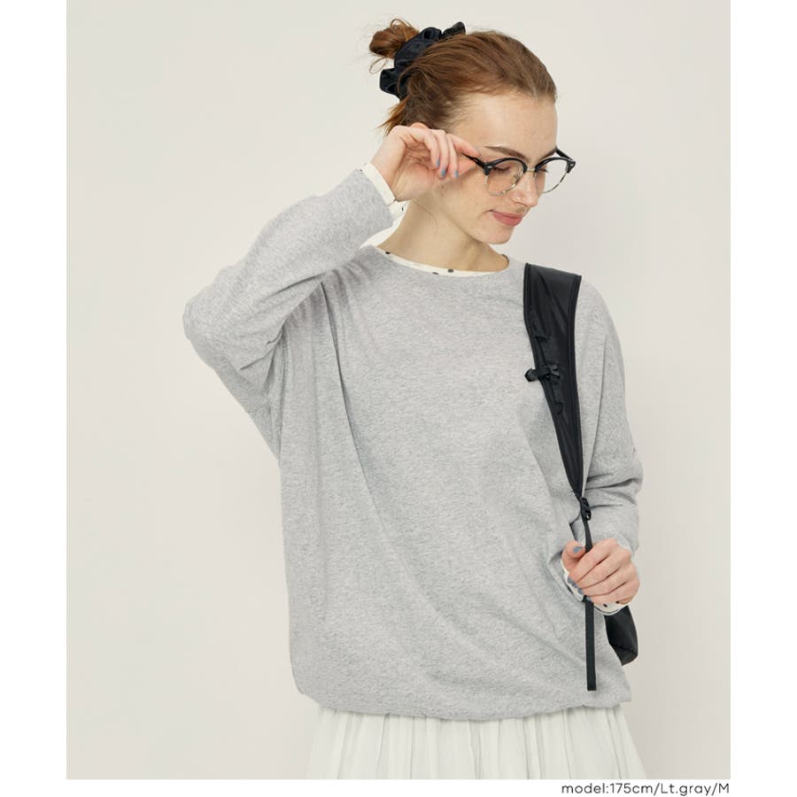 肩から袖にかけてなだらかに広がるドルマンスリーブが特徴の長袖Tシャツ。